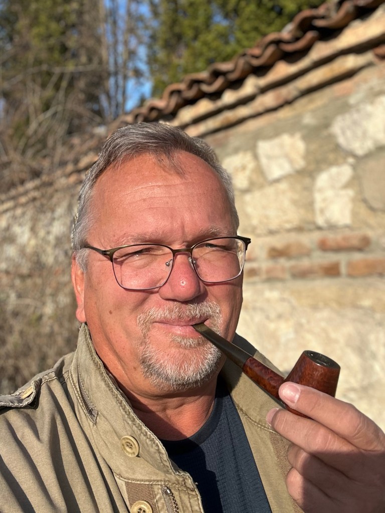 Irgendwann muss ich ja mal die uralten Tabakbestände reduzieren, also nehme ich jetzt immer wieder einmal ein gestopftes Pfeifchen mit raus. Auf dem Rückweg habe ich dann noch eben mein Motorrad von der Plane befreit und gesehen, dass der rechte Außenspiegel lose an der Seite baumelte. Ihr erinnert euch an die wiederholten Berichte vom gekippten Motorrad durch die heftigen Winterwinde.