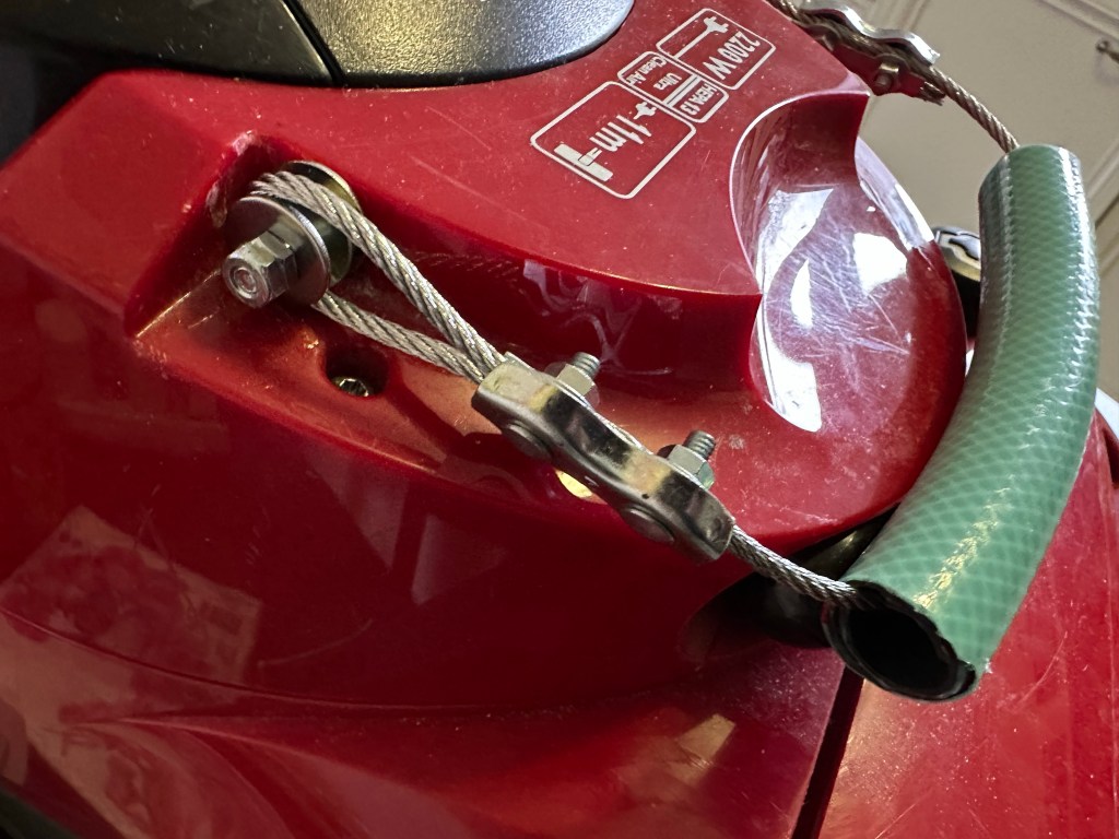 Dann fehlt nur noch der Tragegriff und für den benötigte ich das Stück Gartenschlauch.