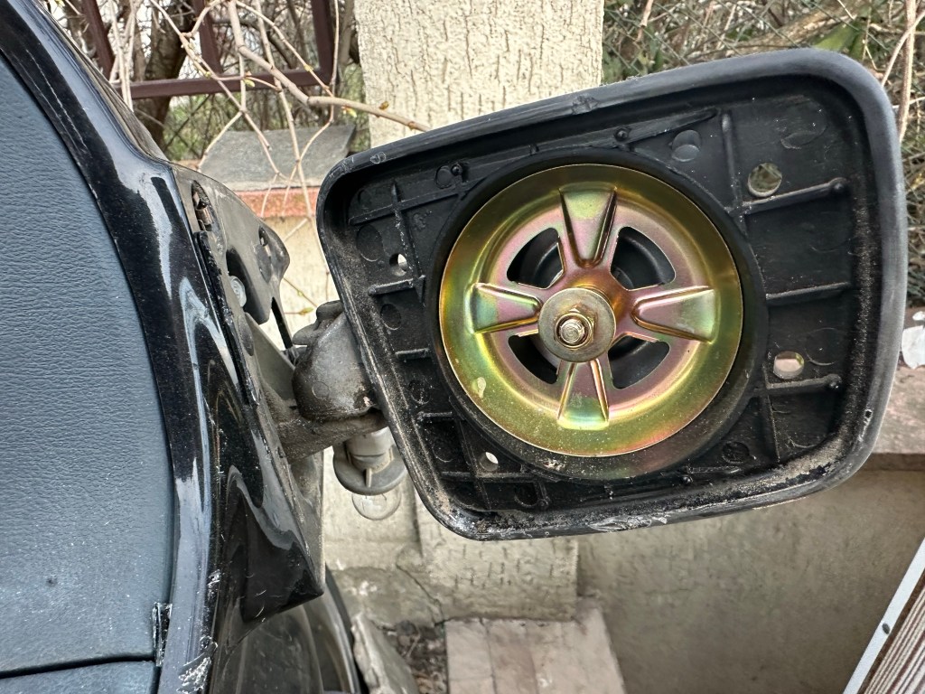 Tja, der Spiegel ist unglücklich aufs Glas gefallen und das hat sich nicht so freiwillig gelöst. 🤬 Außerdem ist einer der drei Befestigungsstecker mit dem umliegenden Plastik ausgebrochen, es war wohl ein sehr unglücklicher Sturz dabei.