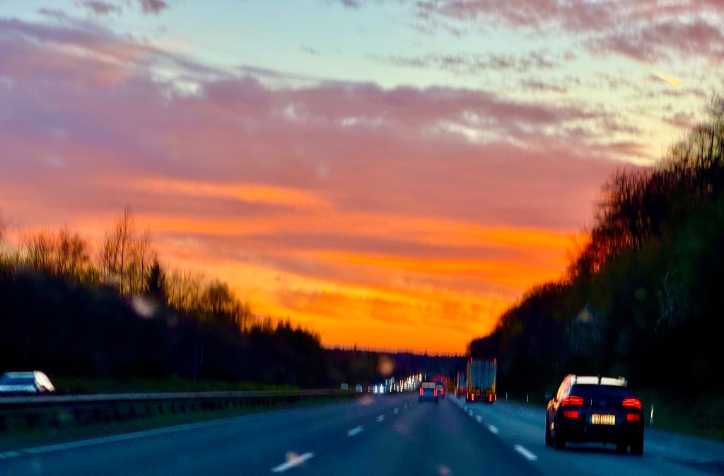 Kurz vor Köln hatten wir noch einen wunderschönen Sonnenuntergang, im Dunkeln sind wir dann bei unseren Gastgebern eingetroffen.