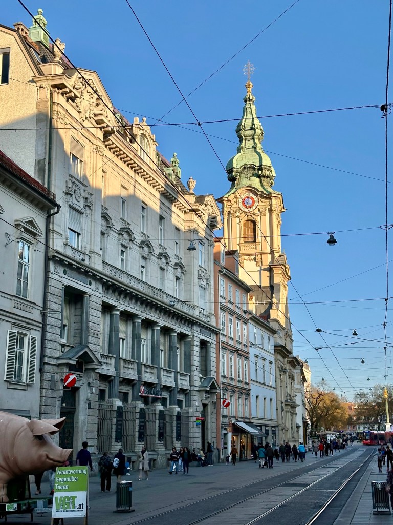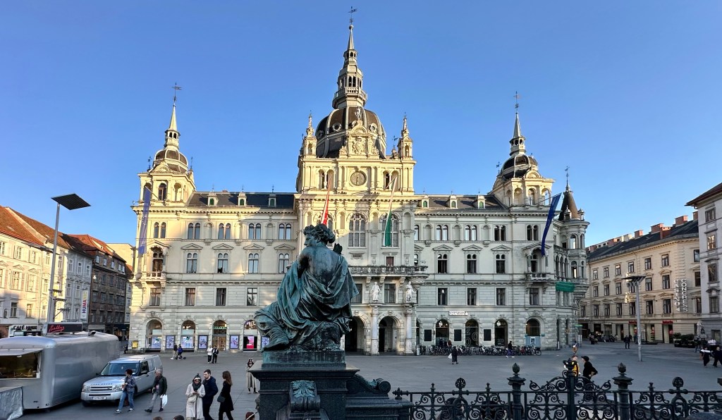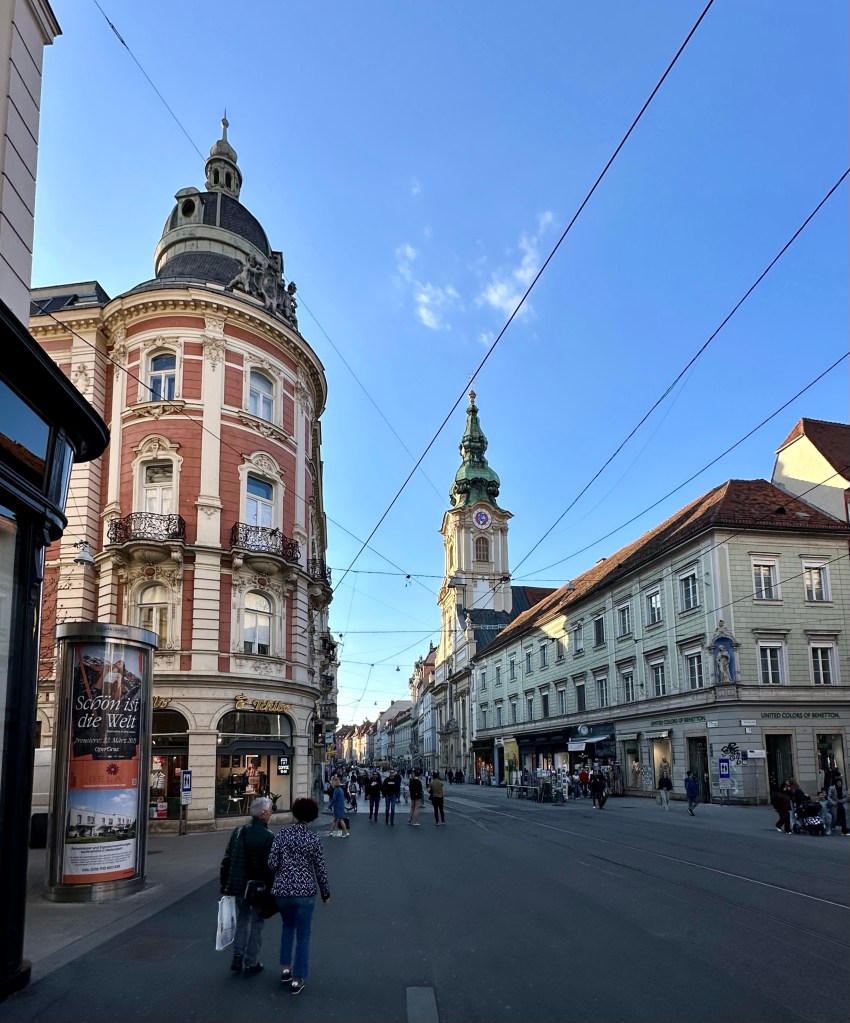 Nach Belgrad kommt Graz, zumindest, wenn man günstig übernachten möchte. In Slowenien hatte ich zuerst etwas gefunden, aber in der Buchungsbestätigung erfuhr ich, dass das „leider“ noch ein alter Preis sei und man jetzt das Doppelte nähme. 🤯