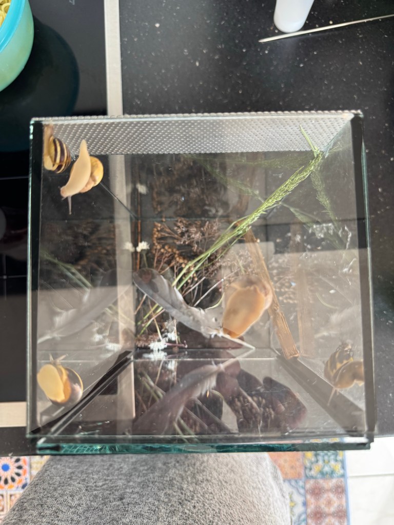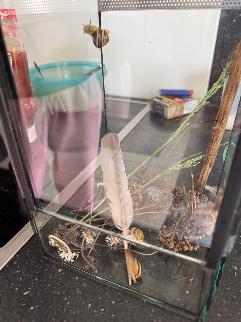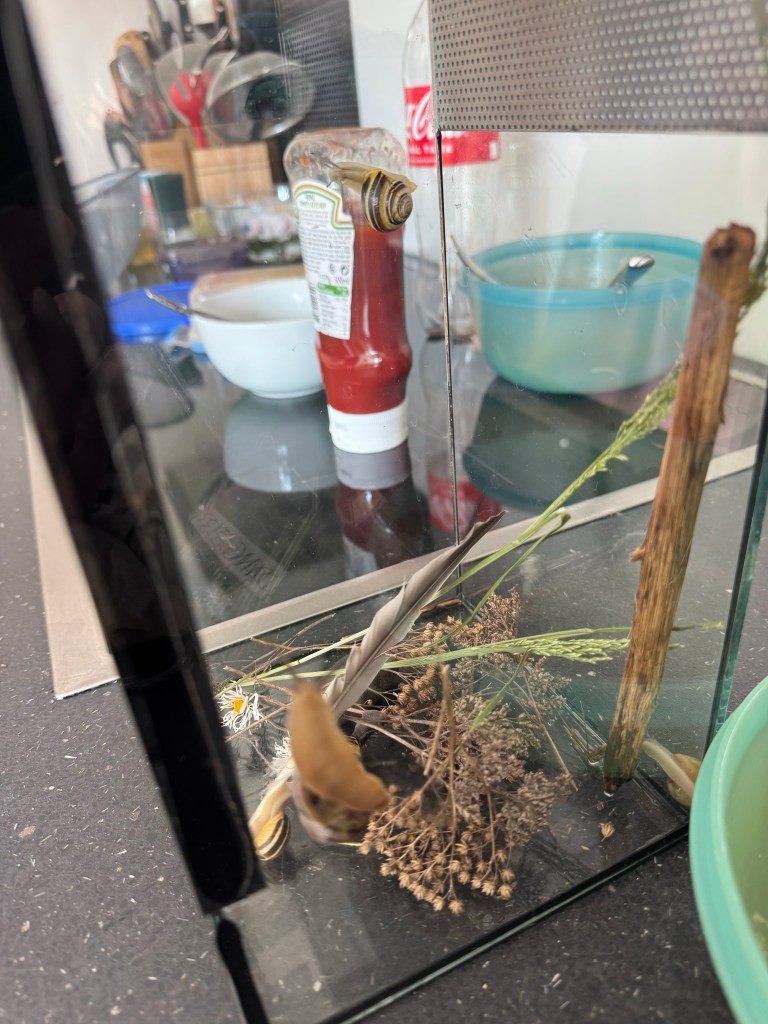 Die Enkelin ist derweil mit Ekelkram beschäftigt. Alles was kriecht, krabbelt oder schleimt wird gesammelt und eingetuppert. Um wieder an ein paar Tupperdosen zu kommen, haben die Eltern letztlich ein kleines Terrarium besorgt.