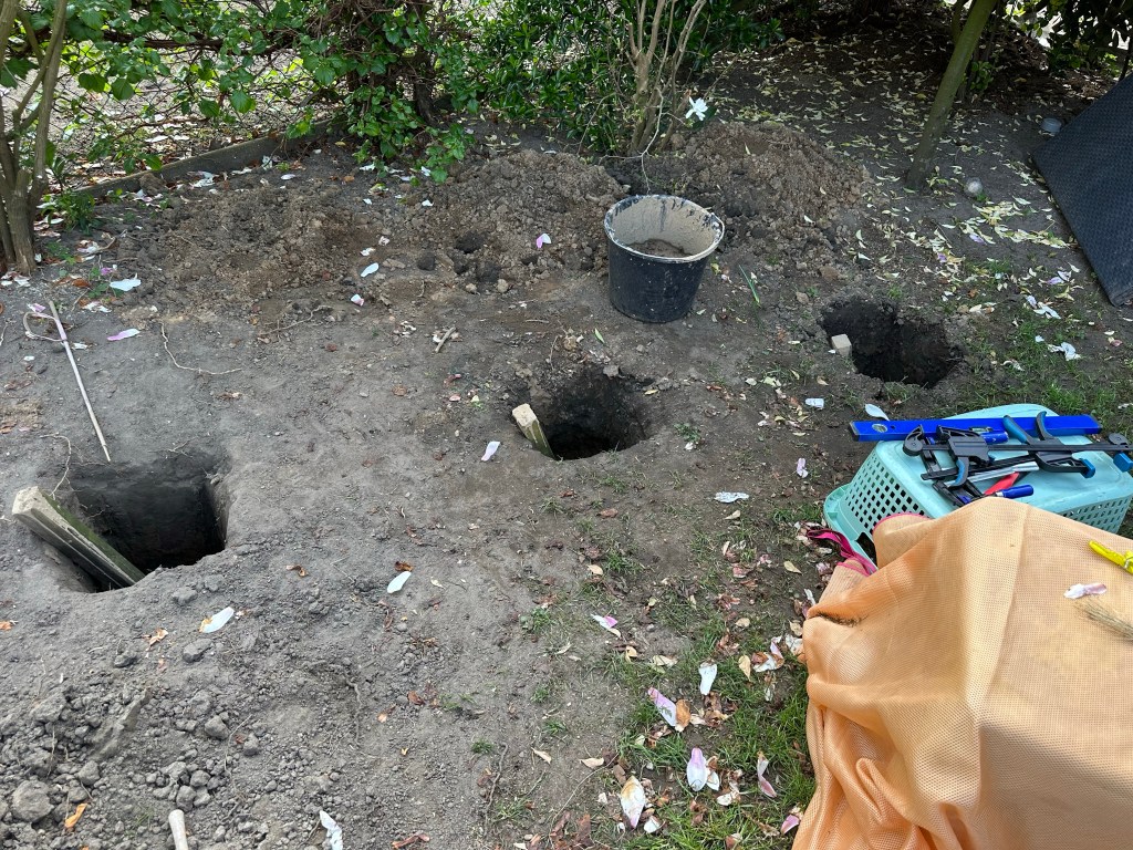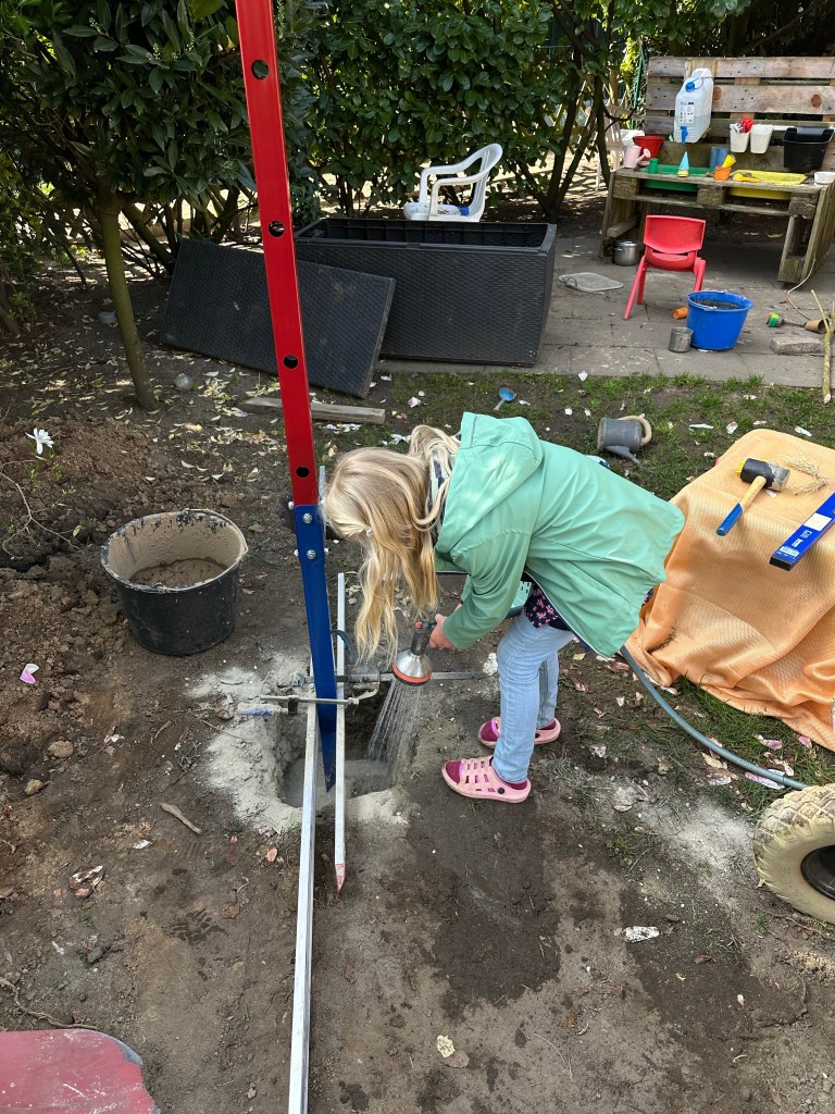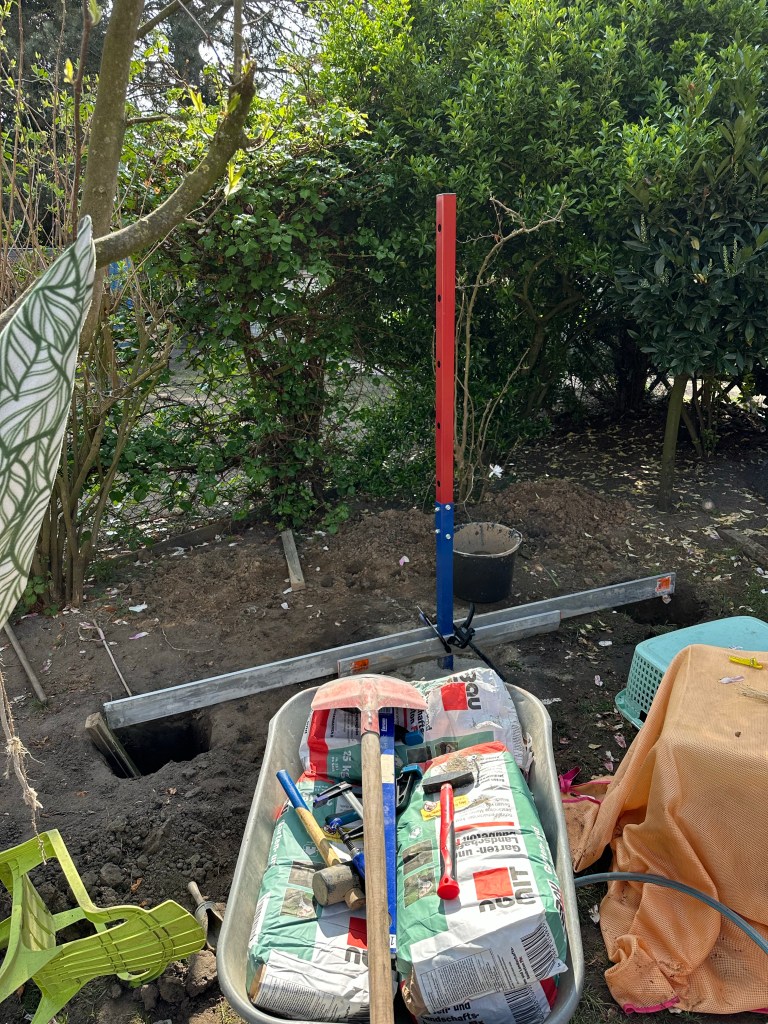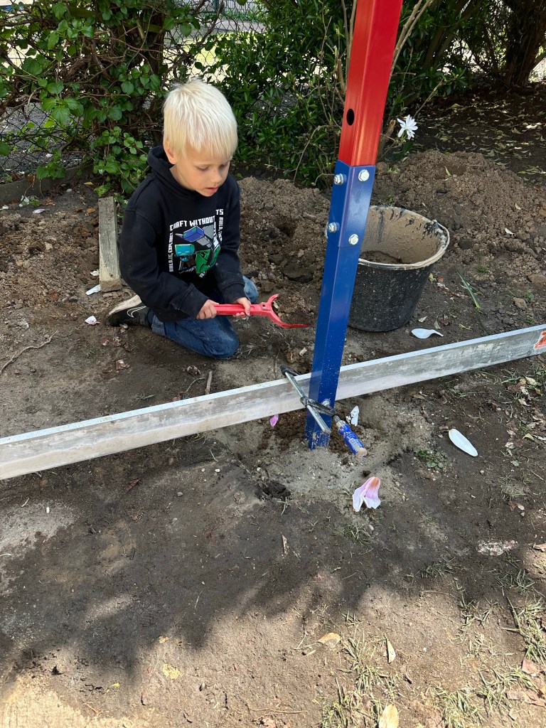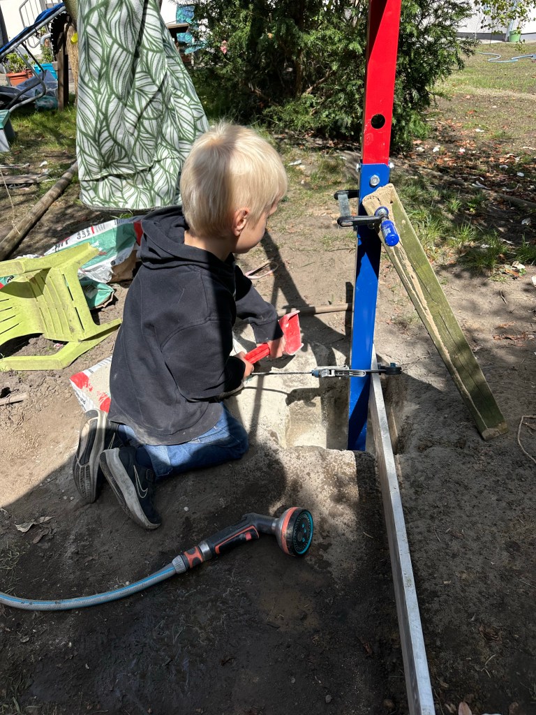 Die Enkel haben den Baufortschritt tatkräftig begleitet, sich aber wie jede billige Hilfskraft aus dem Staub gemacht, wenn es anstrengend wurde. 😂