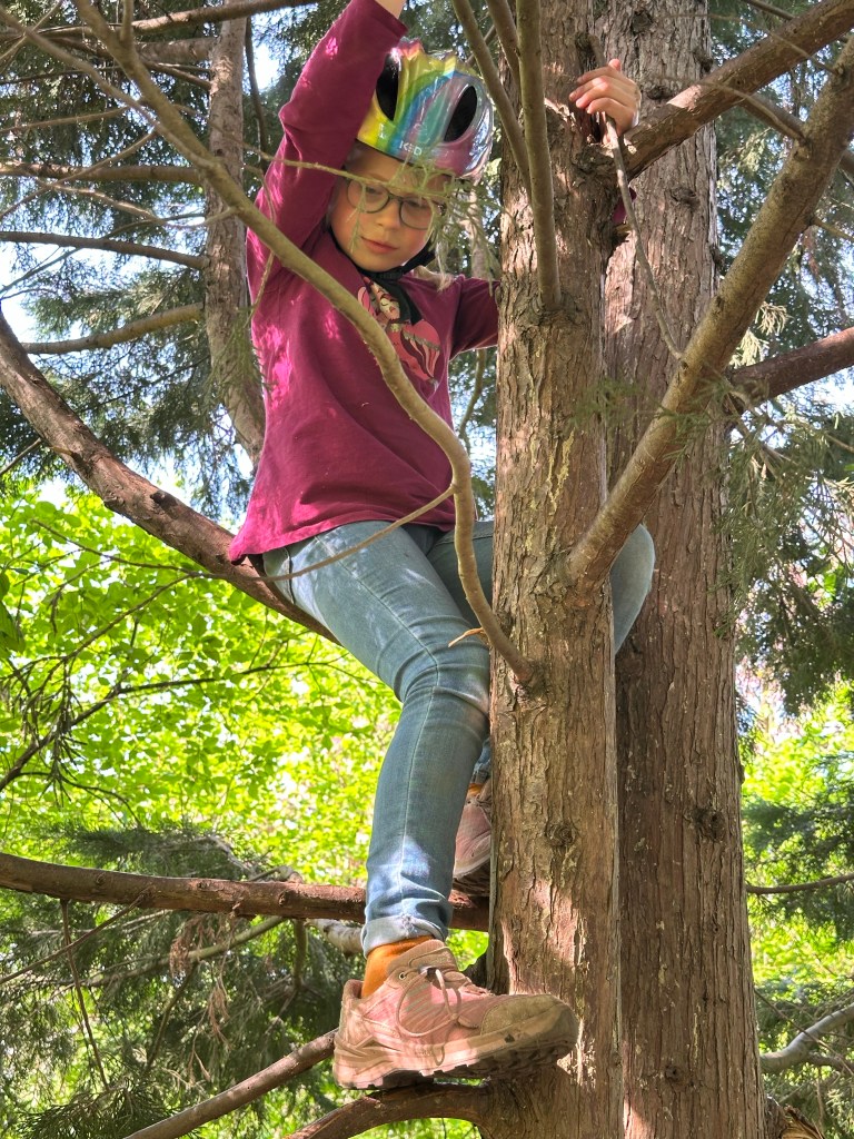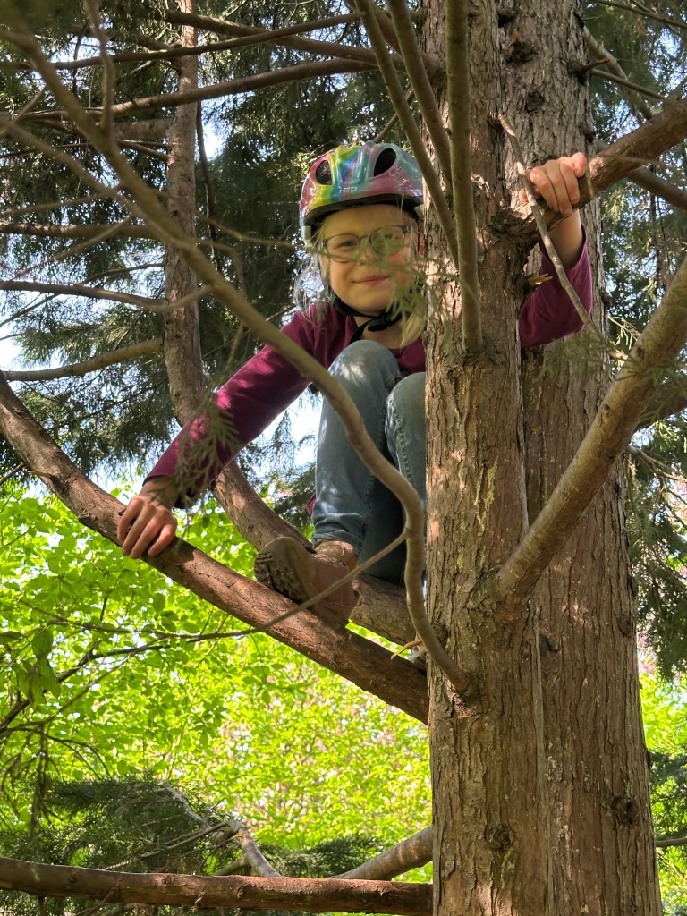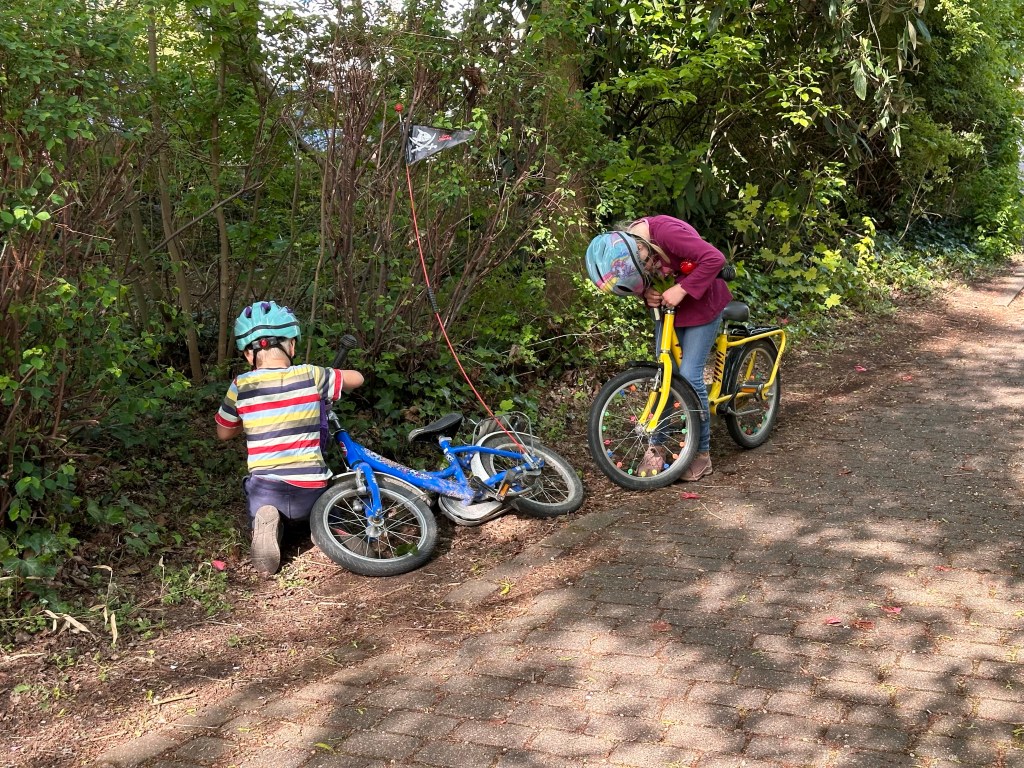 Nachmittags nutzten wir das gute Wetter, um die Eltern zu entlasten und haben den nahegelegenen Spielplatz besucht. Eigentlich waren wir völlig unterfordert, denn die Beiden flitzten unentwegt mit ihren Fahrrädern im Kreis um den Spielplatz herum. Die einzige Unterbrechung war eine Kletterpause auf den dafür geeigneten Bäumen.