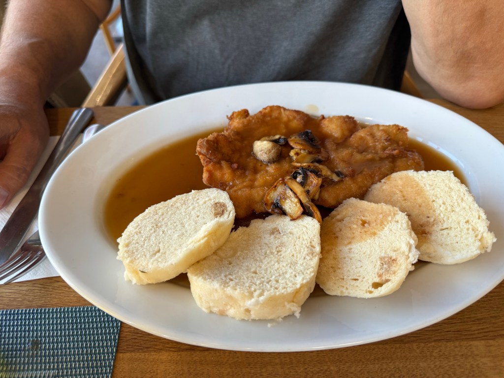 Trotz sozialistischer Vergangenheit haben hier alle Geschäfte UND Restaurants geschlossen – damit hatten wir nicht gerechnet. Dank Google erfuhren wir aber von einem Lokal im/am Duty-free-Shop der nahen Grenze.