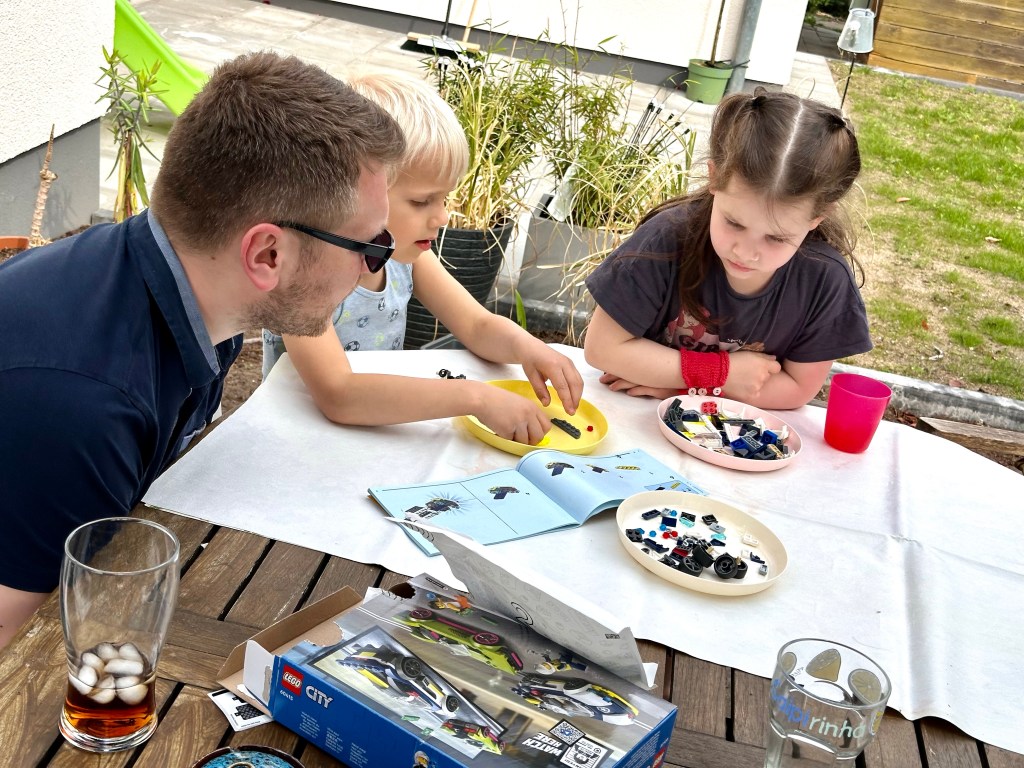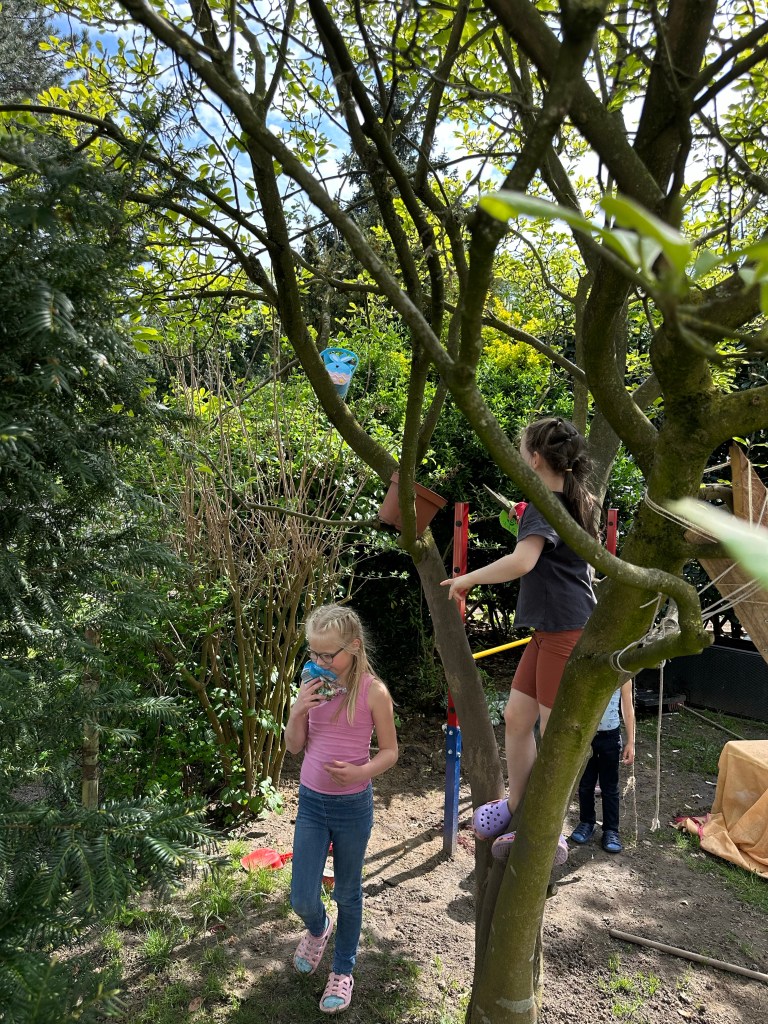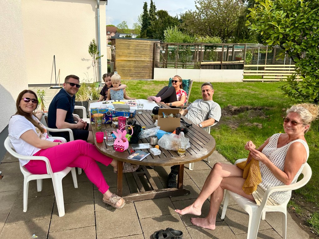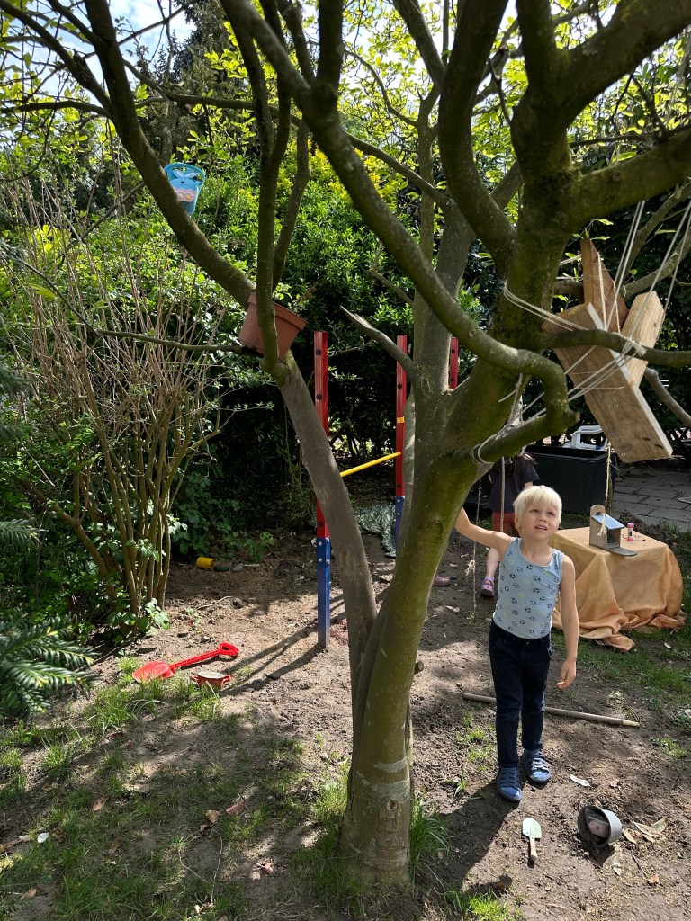 Natürlich mussten wir danach erst in unsere Gastwohnung und die schicke Kleidung gegen gartentaugliche tauschen, bevor es zum Verstecken und Suchen zu den Enkeln ging. Bei der Gelegenheit haben wir schon eine zweite Runde (die erste war samstags) Kram aus der Wohnung ins Auto geräumt.