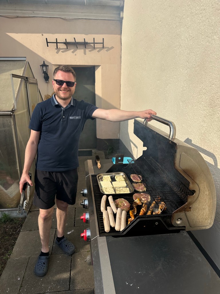 Anschließend hat sich Oli an den Grill gestellt, die Frauen hatten Dipps, Zatziki und andere Leckereien vorbereitet und bei bestem Wetter konnten die Kinder spielen, turnen und toben, während die Erwachsenen gemütlich gefuttert haben.