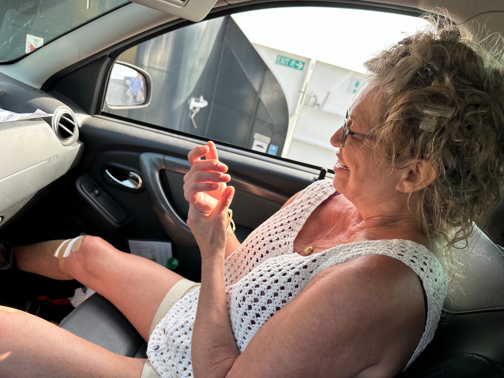 Gegen die Schmerzen hatte Karin was in ihrer Reiseapotheke und für die Prellungen musste kaltes Bier aus der Kühlbox herhalten. 😂