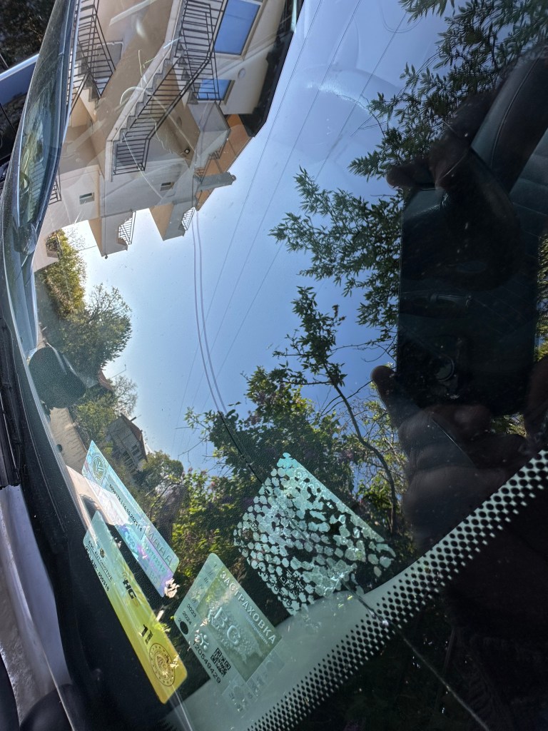 Wir sind gerade zwei Tage unterwegs und parken abends gesichert hinter dem (Grand!) Hotel. Nach der Anmeldung bin ich wieder zum Parkplatz zurück, um das Reisegepäck zu holen, als ich einen Riss in der Windschutzscheibe sehe. Fahrerseite unten. War mir während der Fahrt nicht aufgefallen und das nicht, weil die Scheibe schmutzig war. Die ist nämlich wegen der montierten Action-Cam regelmäßig von Insektenleichen befreit worden!