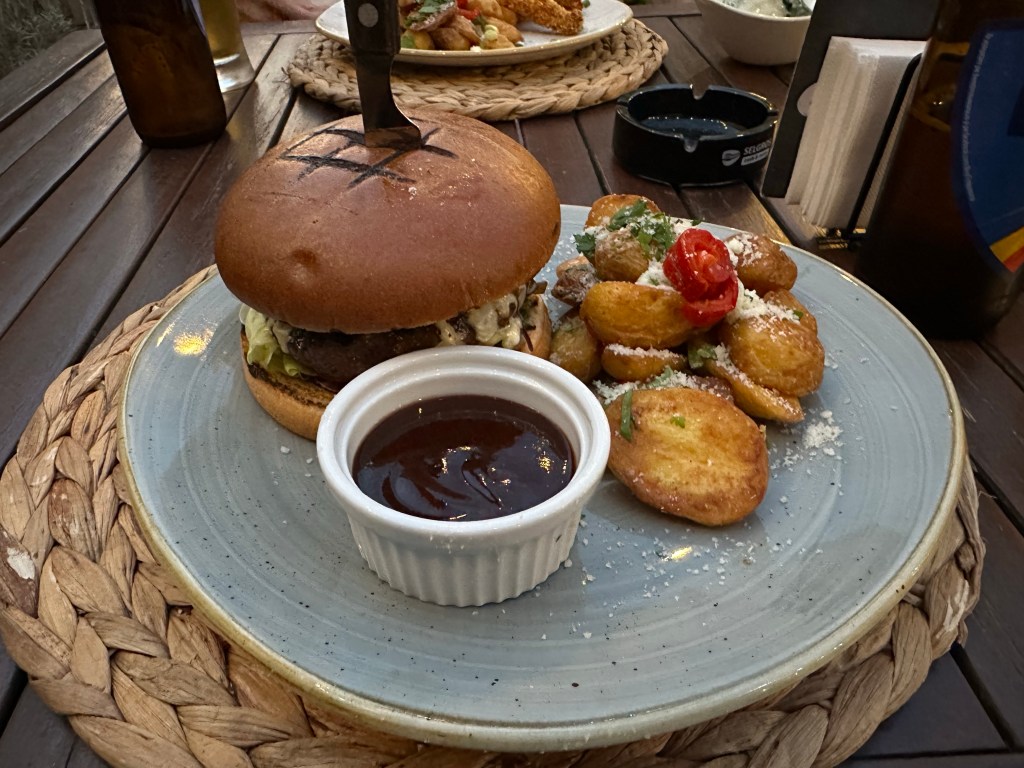 Wir haben aber angesichts der warmen Temperaturen lieber draußen gegessen.