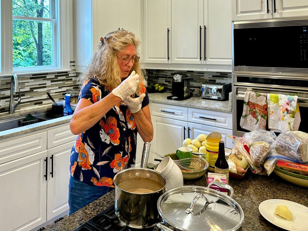 Beginnen möchte ich mit der deutschen Küche. Anika nutzt gerne die Chance, das wir hier sind und Zeit haben, um Karins Kochkünste abzurufen. Gerade Gerichte mit höherem Zeitaufwand sind für die beiden Amerikaner nur selten (hui, gerade fliegt ein echter Kolibri vorbei 👍) zu stemmen. Also habe ich mit Karin Fleisch und Rotwein besorgt, damit sie Sauerbraten ansetzen konnte.