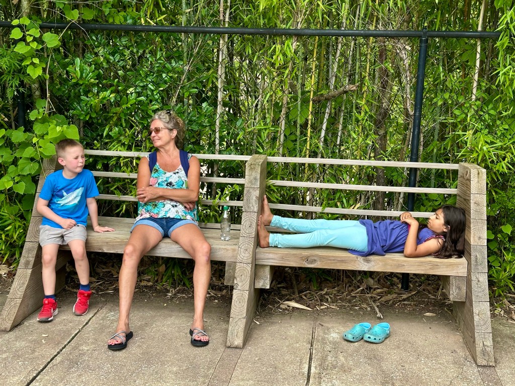 Für den nächsten Tag hatten die Nachbarn von schräg gegenüber (die mit der Party vom Beginn unserer Zeit hier) vorsichtig über Anika angefragt, ob wir vielleicht für zwei Stündchen auf die Tochter aufpassen würden. Klar machen wir das, sie ist ein wirklich reizendes Mädchen und versteht sich super mit Ben. Also die Familienkarte geschnappt und in den Zoo. Die Regenwolken hatten sich rechtzeitig verzogen, so dass die einzige Feuchtigkeit unser Schweiß wurde. 🏜️🔥🥵