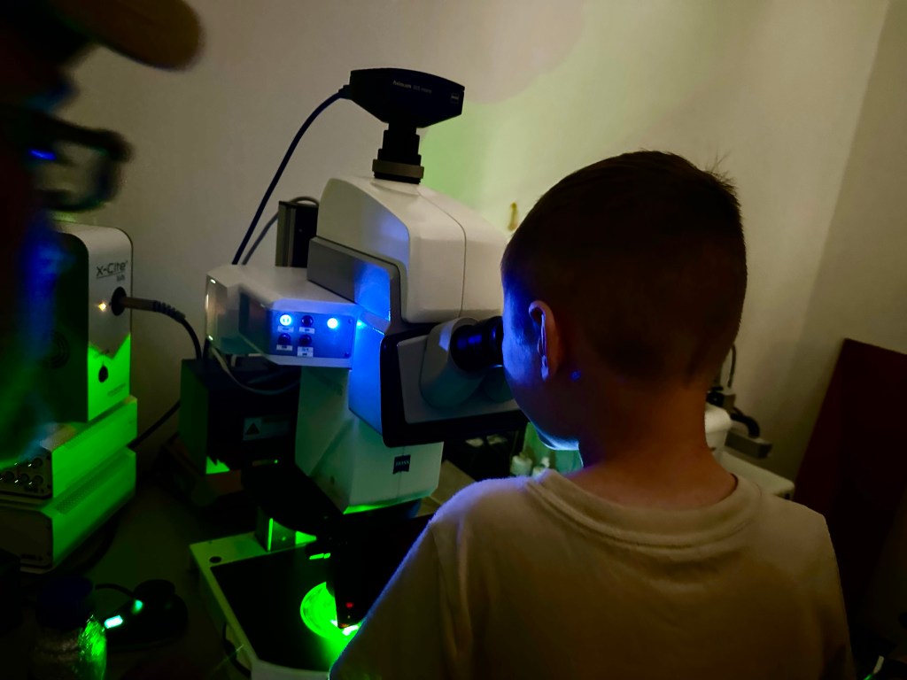 Ganz kurz und grob: Er forscht in einem Universitätslabor an Zebrafischen (Eiern, Embryos und Larven/Jungfischen) unter anderem, warum und wie die einzigen(!) beim Menschen nachwachsenden Nervenzellen (nämlich die Riechnerven) funktionieren, wachsen, erkranken, bzw. absterben. Es gibt zB Hinweise, dass bestimmte Formen von Geruchsverlust (durch Absterben) von denselben Stoffen hervorgerufen werden wie Alzheimer – aber schon Jahre vor dem Auftreten der Krankheit.