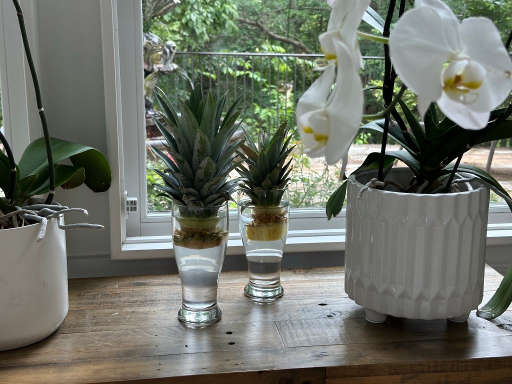 Ganz nebenbei: Der Versuch mit selbstgezogener Ananas scheint zu gelingen. Die erste hat schon etliche Wurzelansätze!