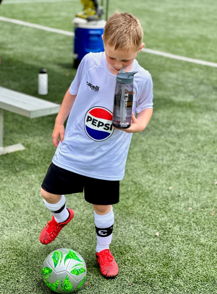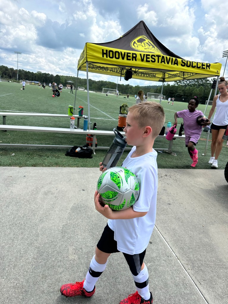 Zuerst habe ich Ben wieder zum Fussball Ferienprogramm gefahren. Hier werde ich endlich jammern und klagen, denn ICH BIN DIE GANZE WOCHE UM 6:30 UHR AUFGESTANDEN!