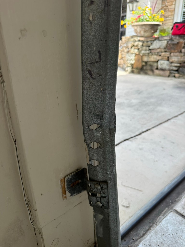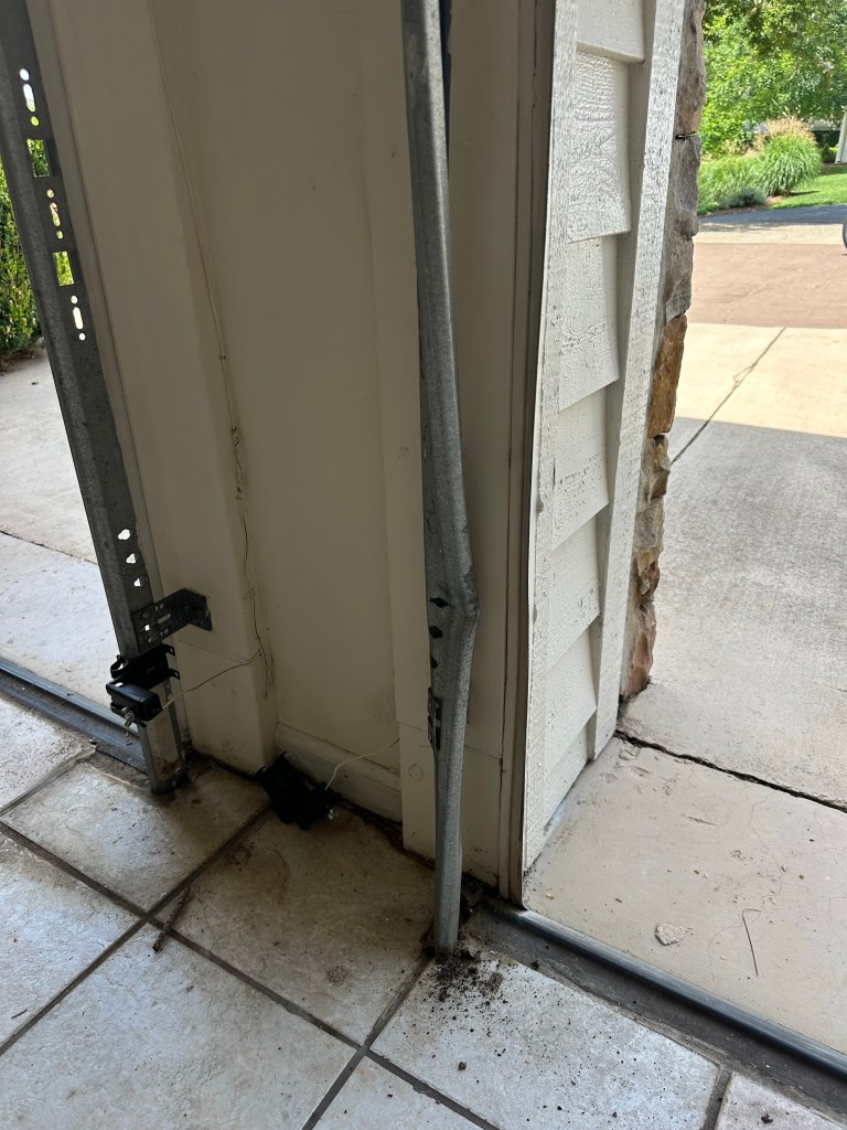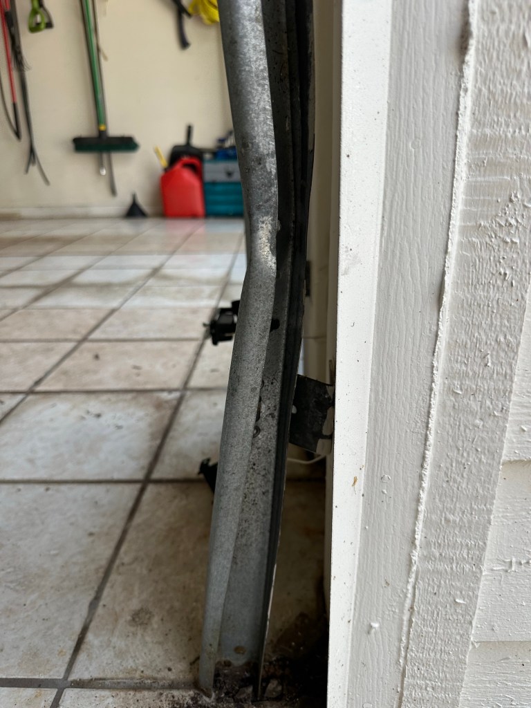 Eigene Versuche, die Schiene an der Wand zu biegen, waren nämlich ebenso erfolglos wie Brads. Also haben wir gemeinsam die Nieten ausgebohrt, das Ganze auf dem Boden (mit meinem Gewicht) fixiert und gebogen und gehämmert. Kurz vor Fertigstellung musste ich los, um Anika und Ben zu holen – zwei Termine ließen keine Verschiebung zu. Also musste Brad den Rest alleine hinbekommen.