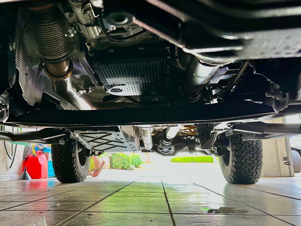 Das Zubehörteil ersetzt die vorhandene Lenkungsdämpfung durch eine etwas weniger Off-roadige, sie muss also vorne unters Auto.