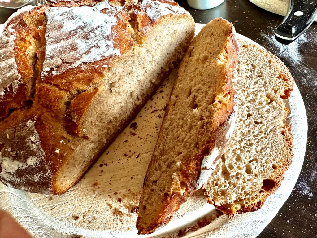 Damit ich das alles durchhalte, gab es am Sonntag zuvor das erste Brot mit dem selbstgezüchteten Sauerteig. Ein voller Erfolg!