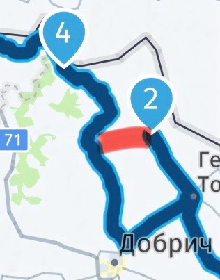 Die Route hatte ich schon 2023 geplant, um den nördlichen Bereich von meiner Abkratzkarte zu tilgen. Ein Stück davon bin ich auch schon mit dem Motorrad gefahren, allerdings war mir zuerst die Grenze im Weg und die alternativ vorgeschlagene „Straße“ verdiente ihren Namen nicht (auf dem zweiten Bild die rote Linie). Nach 50 m musste ich wenden.