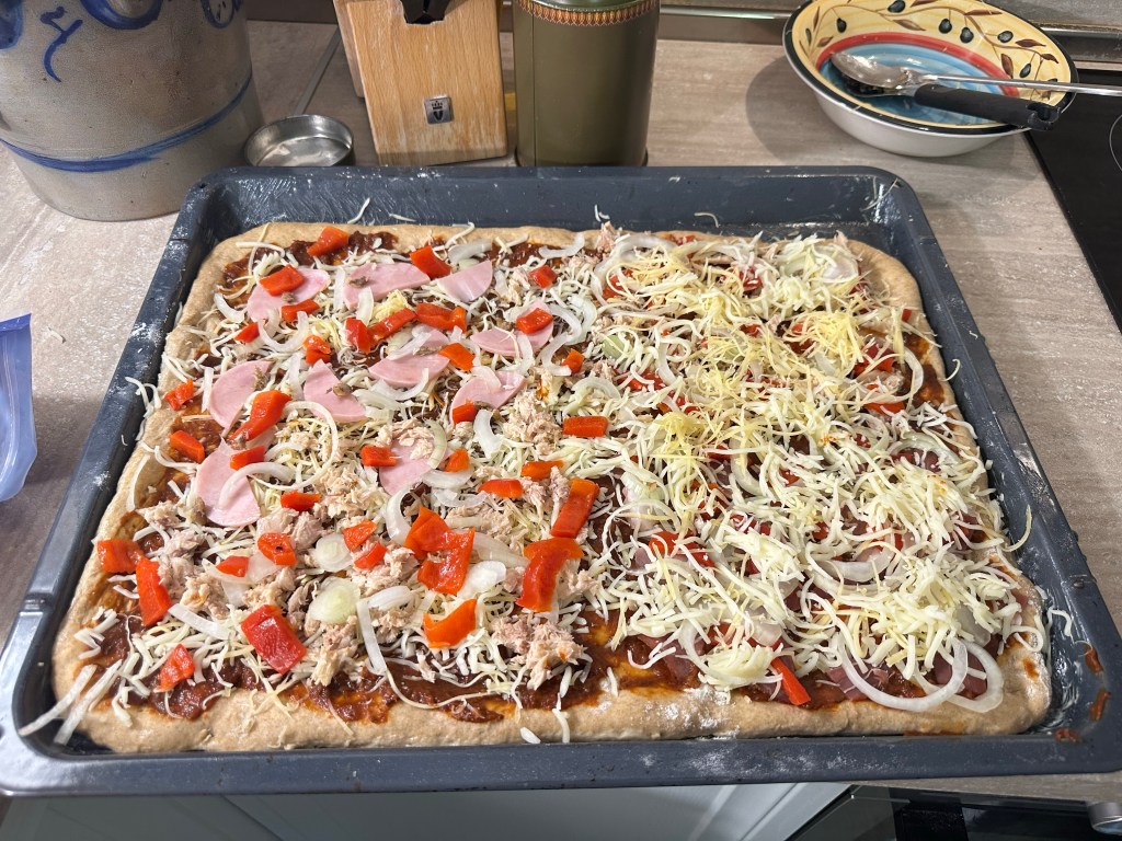 Es war sehr lecker, nicht unsere allerbeste Selbstgemachte, aber ziemlich weit vorne. Der etwas „brotige“ Geschmack des Teigs war zu Beginn etwas ungewohnt, aber nicht schlecht – ungewohnt halt.