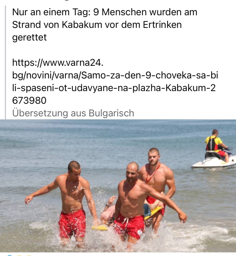 Tatsächlich haben die Bademeister letztes Wochenende an einem Tag 9 Menschen retten müssen. Da waren wir wohl nicht da, denn wir haben noch keinen einzigen Einsatz erlebt. Glücklicherweise! Muss wohl der Samstag gewesen sein.