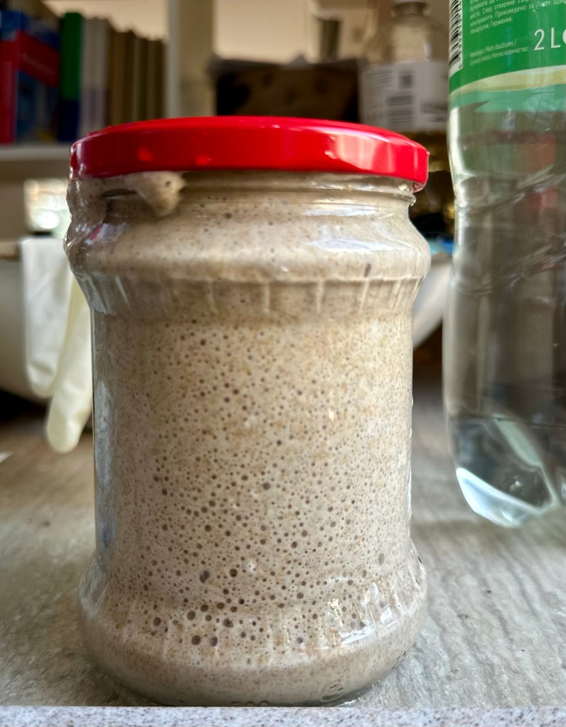 Fangen wir mit Kulinarischem an: Mein Sauerteig wird regelmäßig gefüttert, wächst und gedeiht.