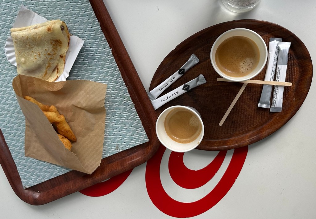 Und unten gab es einen Verkaufsstand, wo alte Frauen selbstgemachte Backwaren anboten. Pfannkuchen und eine Art Krapfen der extrem leckeren Art!