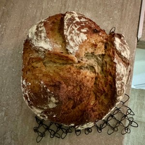 Dafür ist jetzt ein Sauerteigbrot in den Ofen gewandert, Karin wird frische Bratwurst mit Sauerkraut dazu machen, dazu habe ich uns beim Lidl (natürlich aus dem Angebot) eine Flasche Burgunder gekauft. Prost!