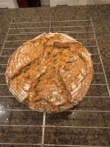 Aber mittlerweile habe ich erfolgreich neuen Quark gemacht und sogar ein frisches Brot gebacken, das Karin ungeachtet ihres Magens gegessen hat. Alles drin geblieben.