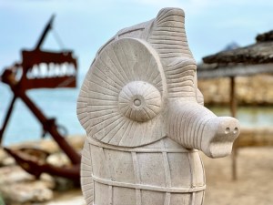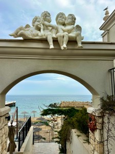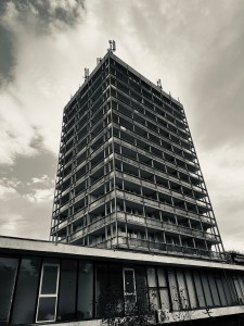 Wo wir schon unterwegs waren und es Karin relativ leicht fiel, haben wir ein seit fünf Jahren liegengebliebenes Projekt in Angriff genommen. Es gibt nämlich mitten im Resort ein sozialistisches (häßliches) Hochhaus, an dem ein Panoramarestaurant beworben wird. Der Blick müsste ganz toll sein.