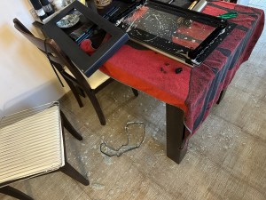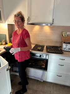 Als wären wir gerade nicht genug abgenervt, fällt Karin beim Reinigen der Ofentür eine der drei Glasscheiben runter.
