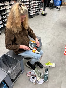 Leider waren sie mit den neuen Sporteinlagen doch nicht optimal, also am nächsten Tag zurückgegeben und nochmal zwei, drei probiert. Als da nichts Passendes dabei war, habe ich darauf bestanden (ja, ich kann auch autoritär 😇 – sie war etwas unlustig wegen des Misserfolgs), noch in die nächste Mall zu fahren.