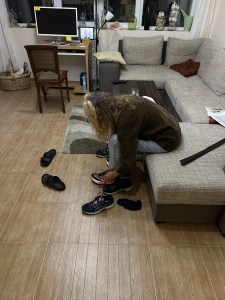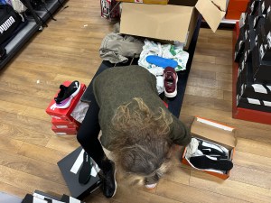 Sie war tatsächlich entspannt genug, um zahllose Modelle zu probieren. Irgendwann fiel die Entscheidung, aber natürlich wurden die Schuhe Zuhause gegen die alten getestet.