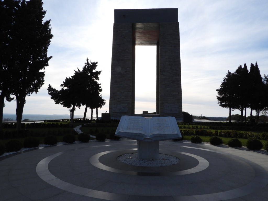Dann fuhren wir ein paar Kilometer zurück zum riesigen türkischen Monument. Bevor ich die Fotos zeige, möchte ich euch eine Inschrift zeigen, die dort ebenfalls angebracht ist. Sie zitiert Kemal Atatürk, den Begründer der modernen Türkei. Er kämpfte nämlich in der Abwehrschlacht dort als Offizier, bevor er einige Jahre später Staatschef wurde.