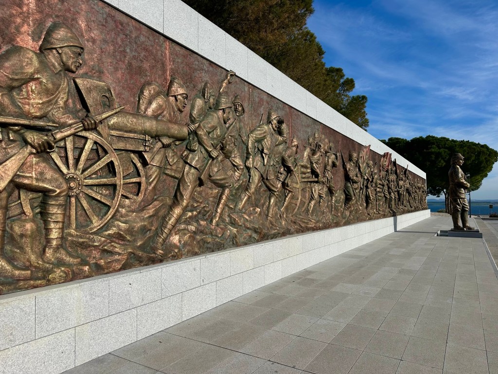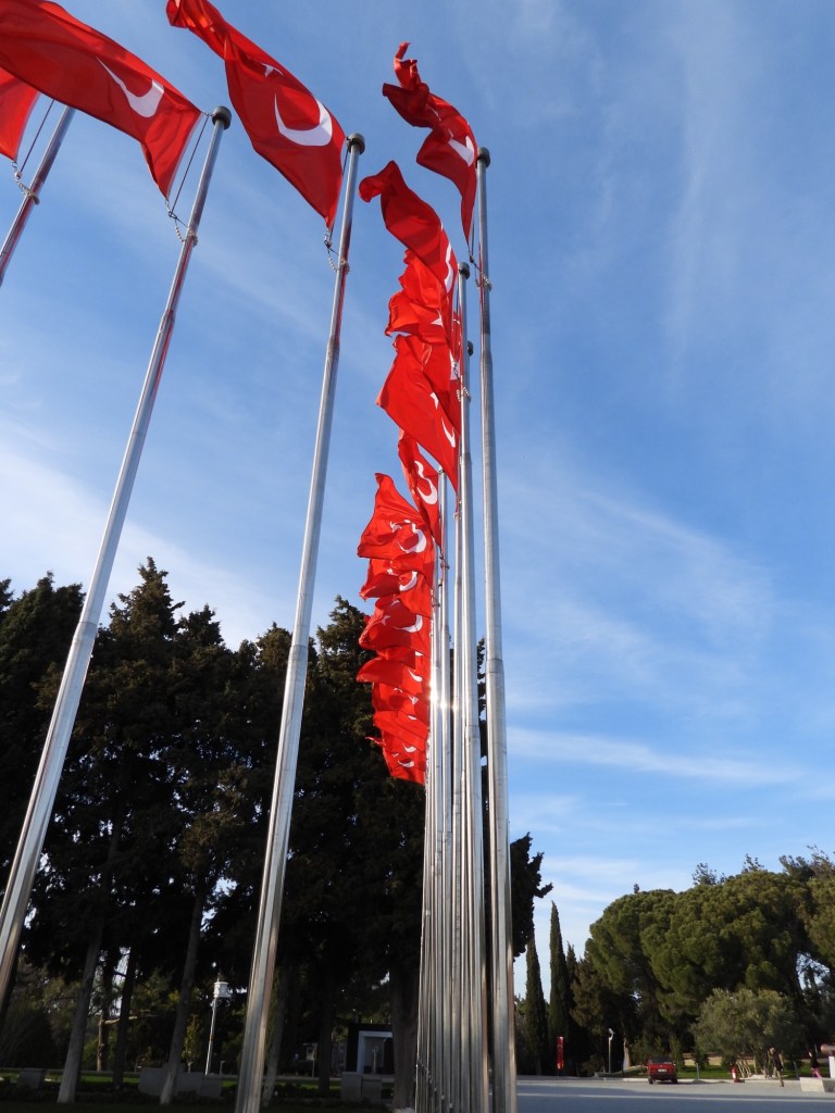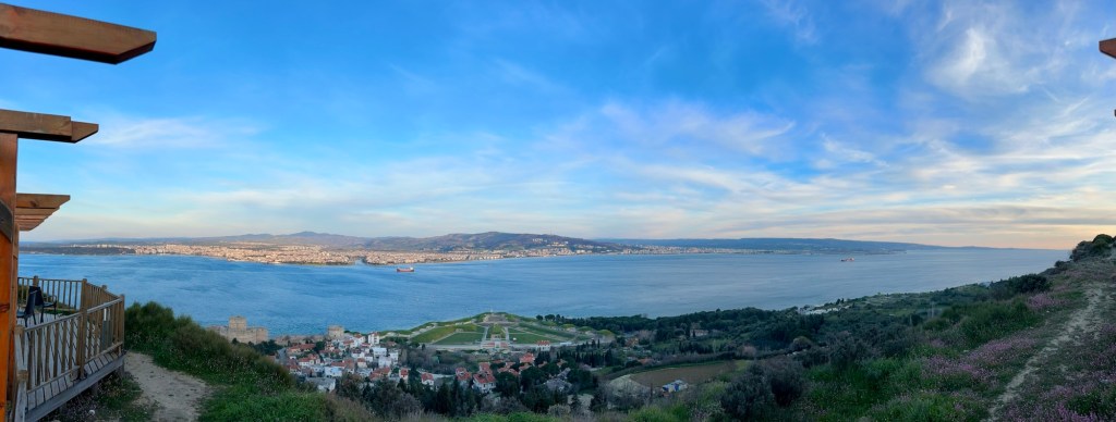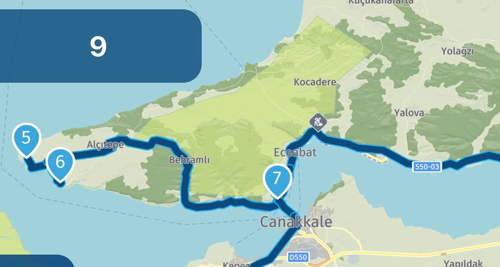 Das Ganze ist nämlich die Halbinsel Gallipoli (nicht zu verwechseln mit einem italienischen Ort gleichen Namens). Dort fand eine große Schlacht im ersten Weltkrieg statt, bei der die Alliierten mit einer riesigen Flotte versuchten, die Halbinsel zu besetzen, aber an den verteidigenden Osmanen scheiterten. Über 100.000 Tote und 250.000 Verletzte auf beiden Seiten! Also ein Gemetzel wie bei Verdun, nur mit Wasser…