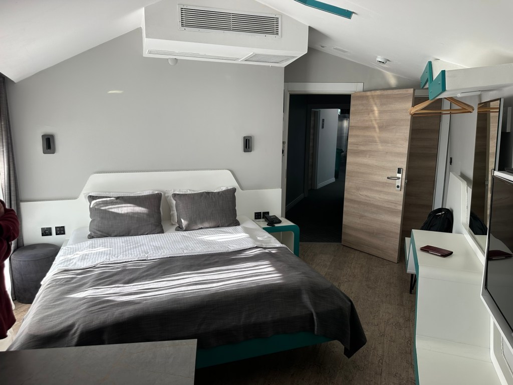 Ich bin ein paarmal zur Rezeption runter und die Dame hat jedesmal versucht, das Türschloss/unsere Karte zu resetten, doch zuletzt bekamen wir das Nebenzimmer. So ein kleines hatten wir nur sehr selten – wenn überhaupt. 😩