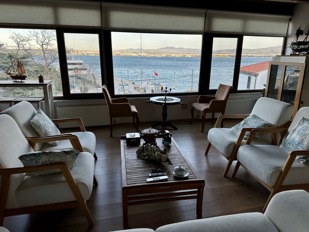 Ebenfalls überhaupt nicht schlecht war die Unterkunft. Der Gastgeber war pensionierter Marineoffizier und das Haus voller Memorabilia (neues cooles Wort entdeckt 😎). Das allerbeste war aber der Ausblick. Nachdem Karin beim Begrüßen erwähnt hatte, dass wir wegen unseres 40. Hochzeitstags unterwegs wären, bekamen wir das beste Zimmer. Mit Vorraum/Wohnzimmer und – Aussicht auf die Meerenge. Ein Traum. Da würde ich den ganzen Tag sitzen und gucken.