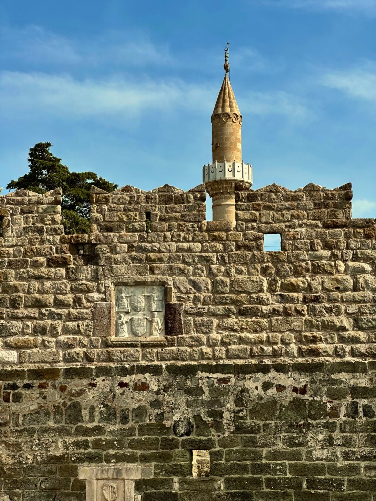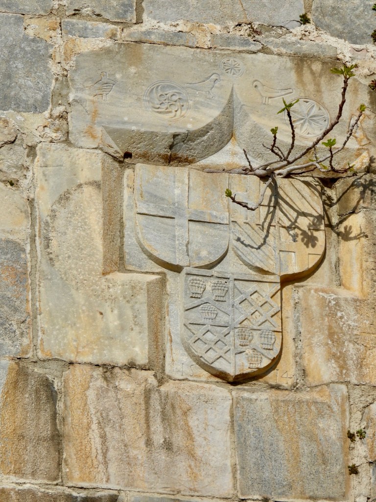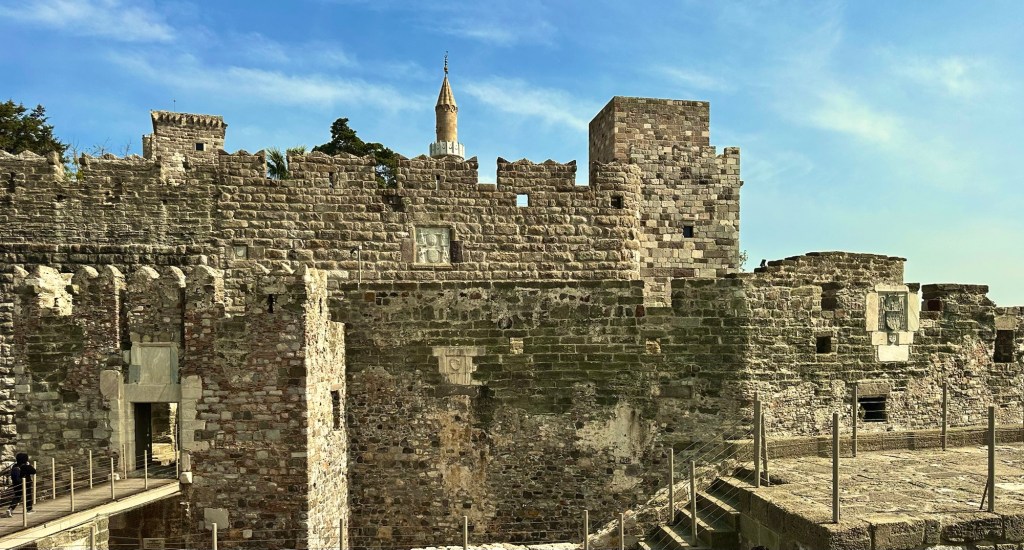 Wir haben uns nicht allzuviel davon versprochen, vielleicht einmal innen gucken, Aussicht genießen… Aber weit gefehlt. Wir konnten eigentlich jede Ecke, jeden Turm und die Wehrgänge hinter den Mauerkronen begehen. Das Gemäuer ist eine originale Kreuzritterburg, die von dem Vorgängerorden der Malteser/Johanniter benutzt wurde. In den Mauern sind überall die persönlichen Wappen der regierenden Großmeister zu sehen, in den Türmen (deutscher, französischer…) sind jeweils Ausstellungsräume, so das es sich wirklich lohnt, überall mal raufzuklettern und reinzuschauen. Auf einem Hofbereich hat man sogar ein kleines Schiffsmuseum errichtet, in dem ein fast vollständig erhaltenes Schiff samt Inhalt ausgestellt ist, das in der Nähe gefunden wurde. Also wirklich empfehlenswert.