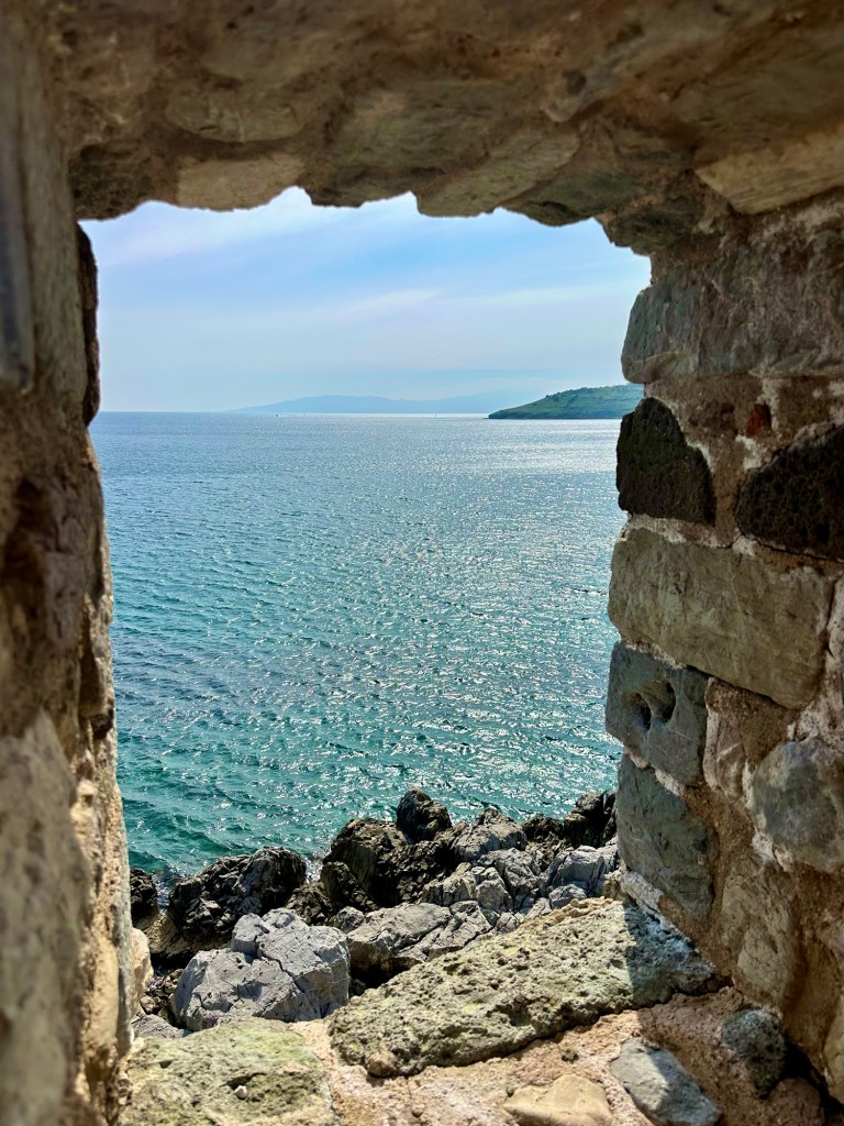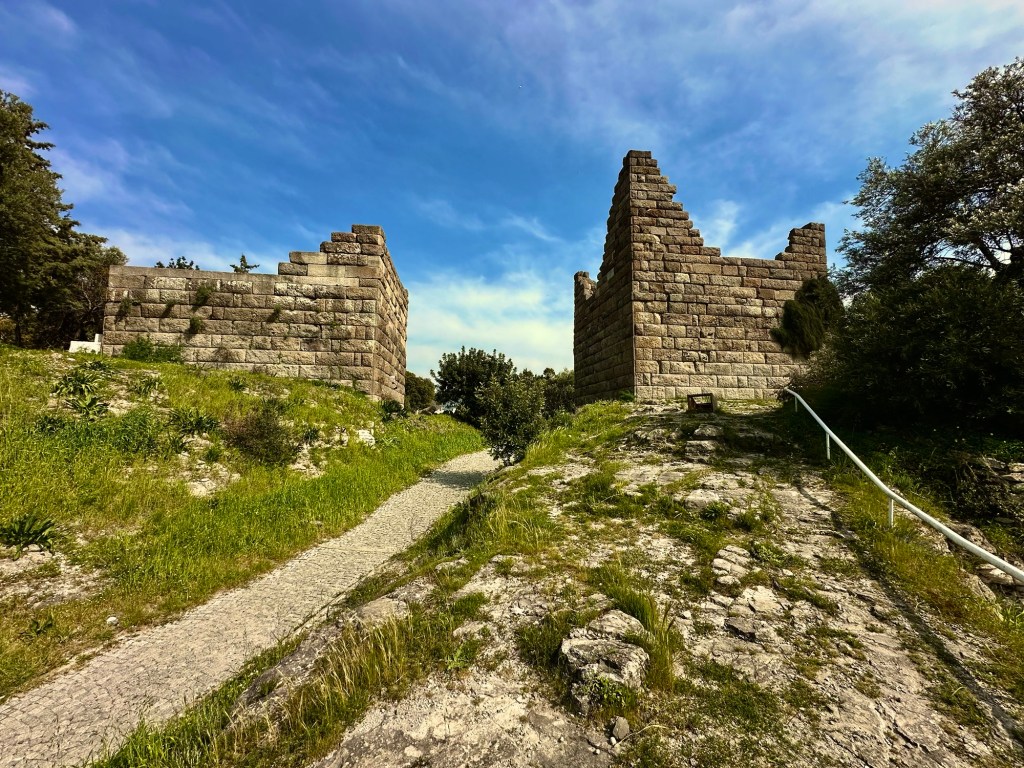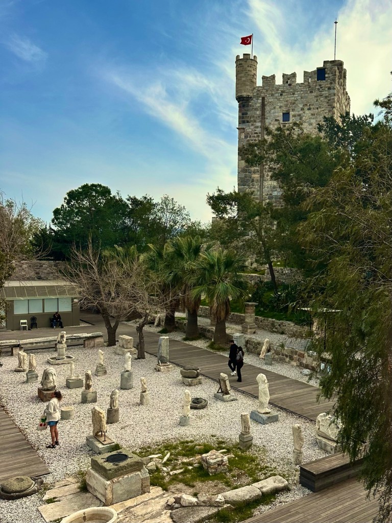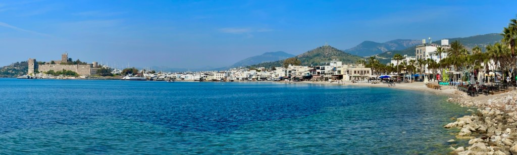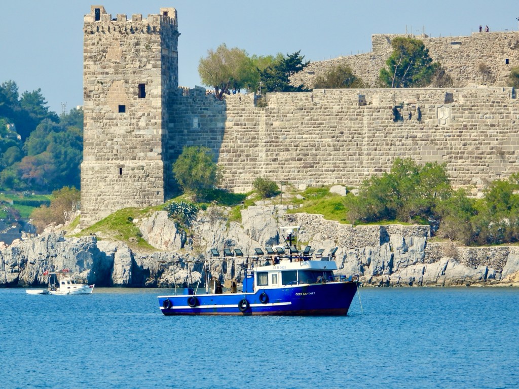 Wir waren, wie berichtet, an den Windmühlen(ruinen) und konnten den Blick auf beiden Seiten hinunter nach Bodrum genießen. Dabei sahen wir nicht nur die große Burg…