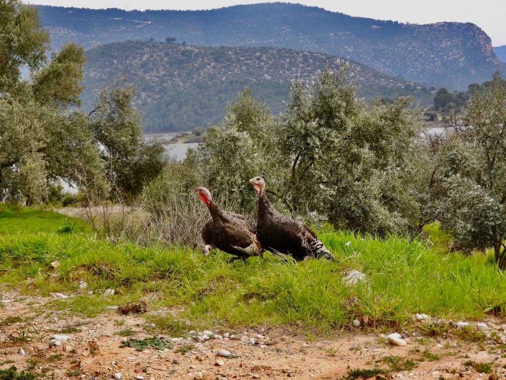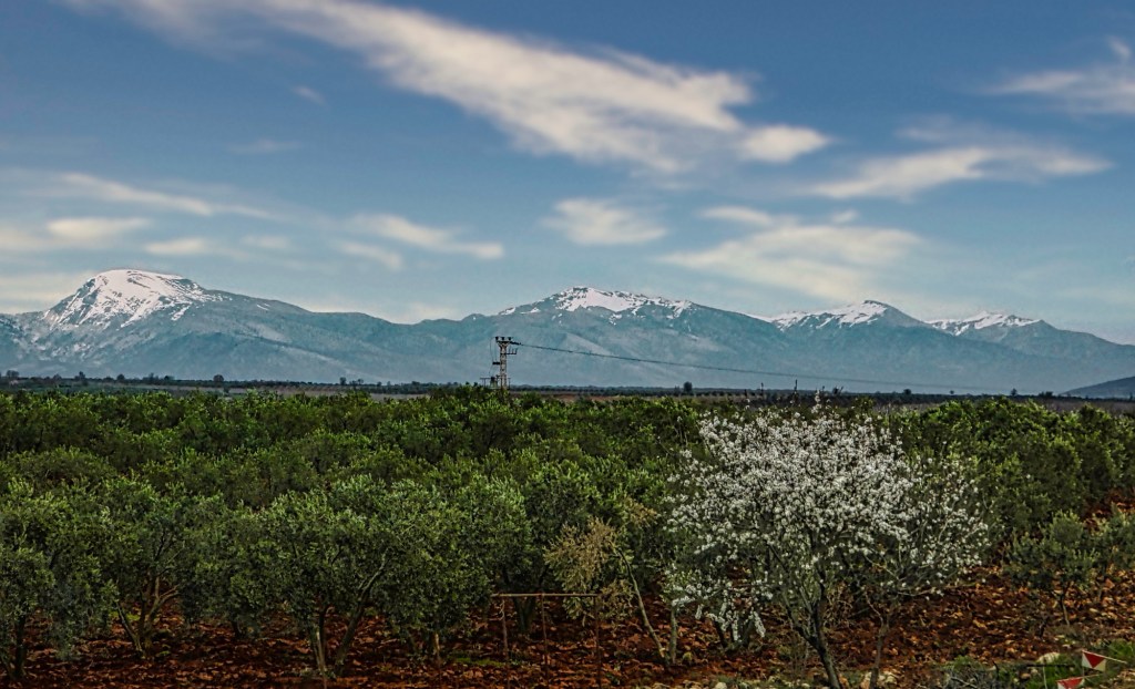 Durch endlose Obstplantagen mit schneebedeckten Gipfeln als Begrenzung ging es auf der Neben-Nebenstrecke zum Zwischenziel. Wir gut, dass wir in Pamukkale wieder zwei Übernachtungen eingeplant hatten, weswegen es uns egal sein konnte, wenn wir etwas später als geplant ankommen würden.