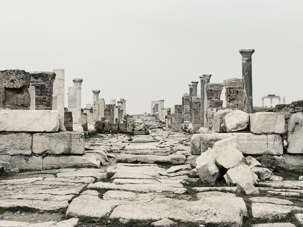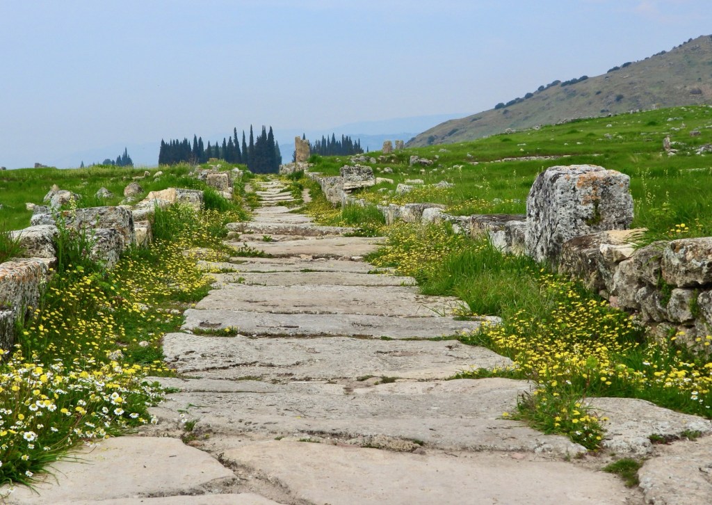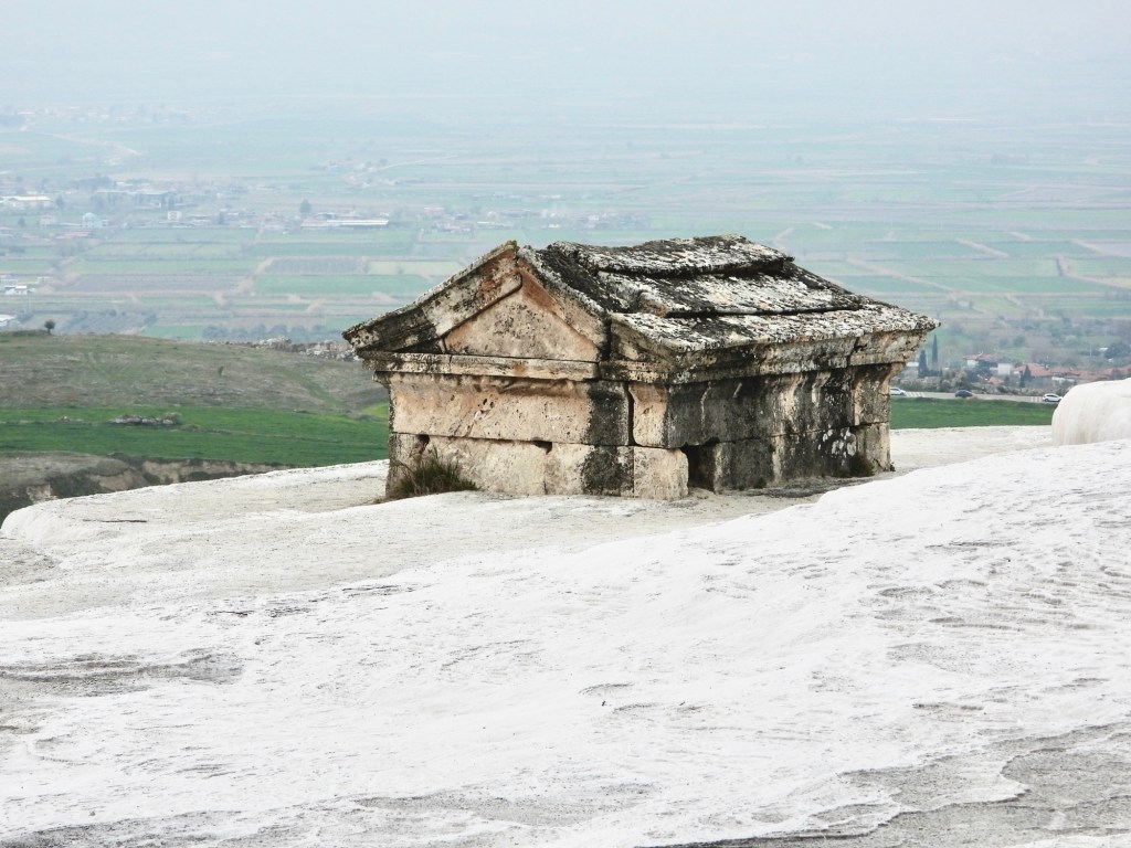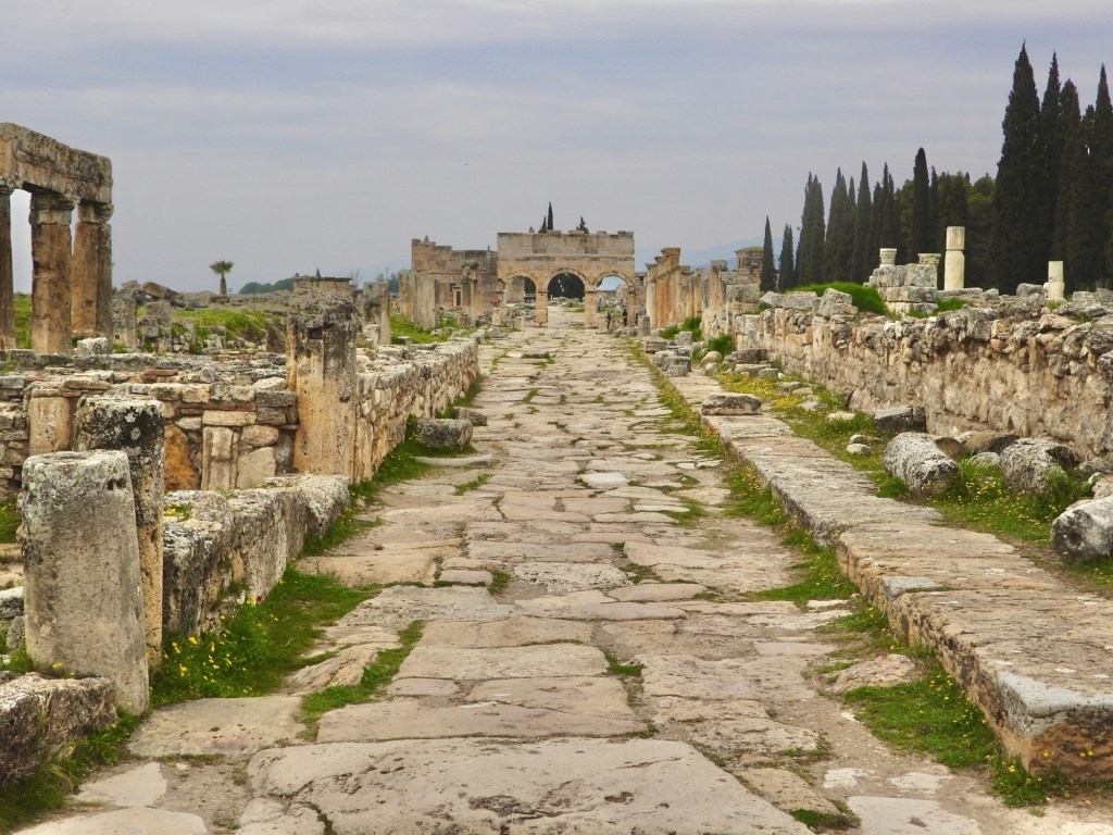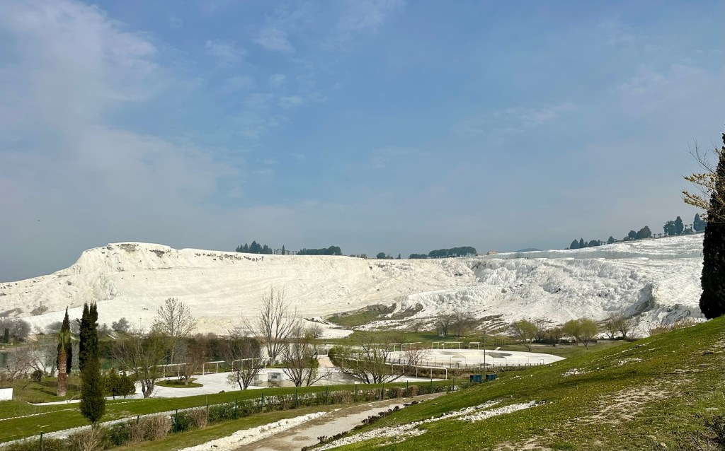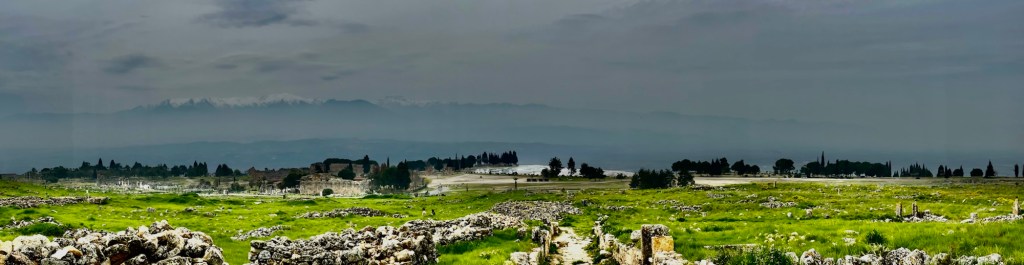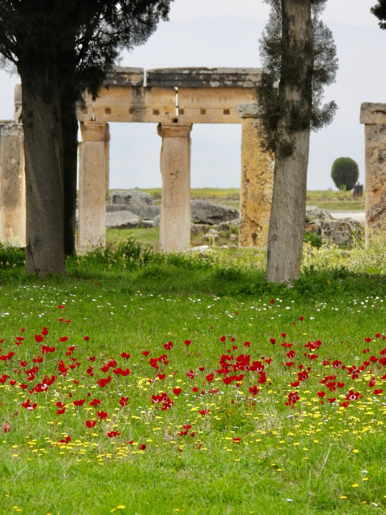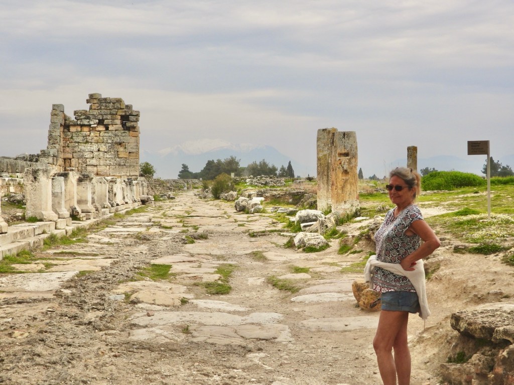 Bevor ich euch die Eindrücke von der darüberliegenden Ruinenlandschaft zeige, habe ich noch ein Foto der Kalkterrassen am Nachmittag. Die Touristen aus den Feriengebieten fahren halt normalerweise morgens mit den Bussen los und bevölkern dann nachmittags -auch schon in dieser Jahreszeit- das Gelände.