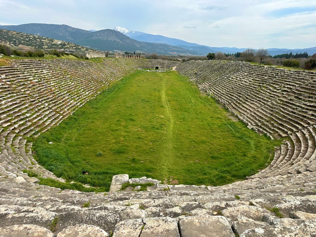 Hahaha! Dass wir nicht noch zum 700m entfernten Stadion gelaufen sind, war nur dem Zeitdruck zu verdanken. Das Gelände der antiken Stadt muss riesig gewesen sein, wenn es von der Hauptstraße in eine Richtung noch 700m weit geht. Die Hauptstraßen tendieren nämlich immer dazu, die Städte mittig zu teilen. Auch hier ist übrigens viel relativ neu touristisch erschlossen und unbedingt ein Tipp!