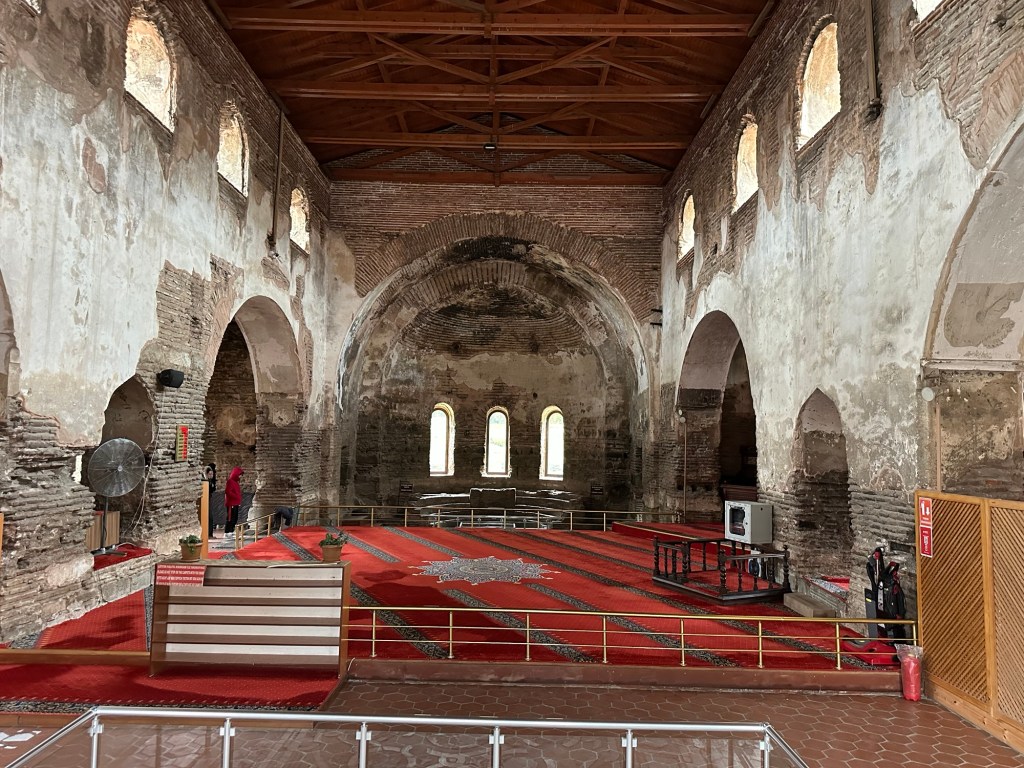 Die Kirche ist „natürlich“ eine Moschee geworden, trotzdem touristisch zugänglich, sogar mit „Schuhe an“, aber in erbärmlichen Zustand. Nach den gut renovierten und erschlossenen Sehenswürdigkeiten eine kalte Dusche.
