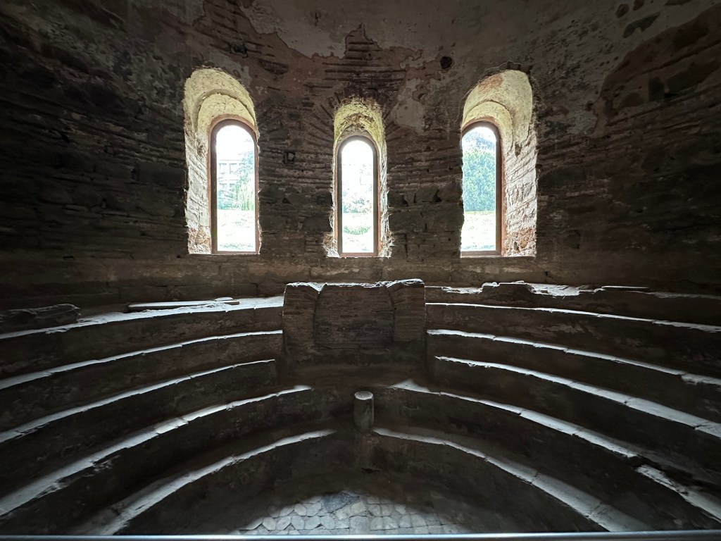 Sehr beeindruckend und trotz des trüben Wetters sehenswert. Wieder mal ganz anders. Außer dem gut erhaltenen Stadion gab es hier den (angeblich) einzigen Park mitten in einer Stadt dieser Zeit. Denkt man ja nie drüber nach, aber scheinbar musste sich damals jeder selbst um Grünzeug kümmern. 😂