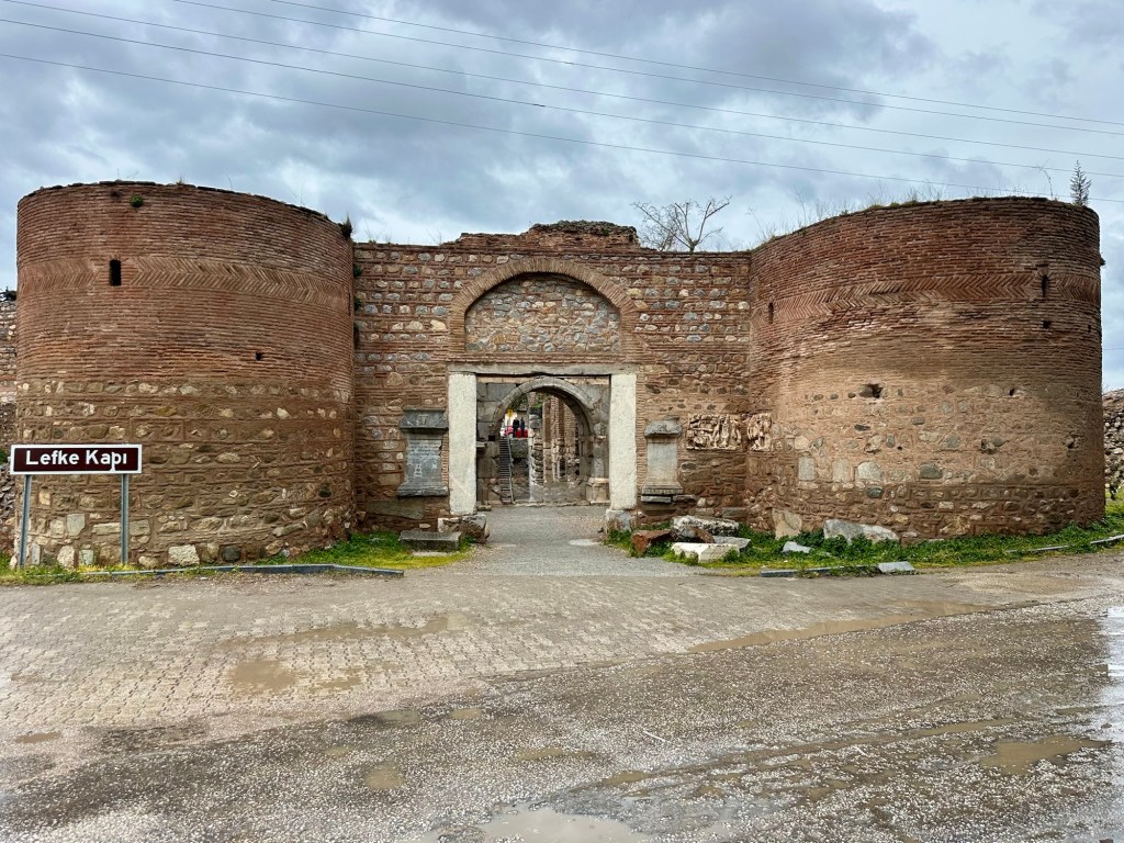 Das zweite Besuchsziel von Iznik ist die fast vollständig erhaltene Stadtmauer. Bei schönem Wetter hätten wir uns sicher ein paar Bereiche zu Fuß erkundet und angesehen, so aber sind wir nur auf einen kurzen Stopp zum Stadttor in der Nähe gefahren.