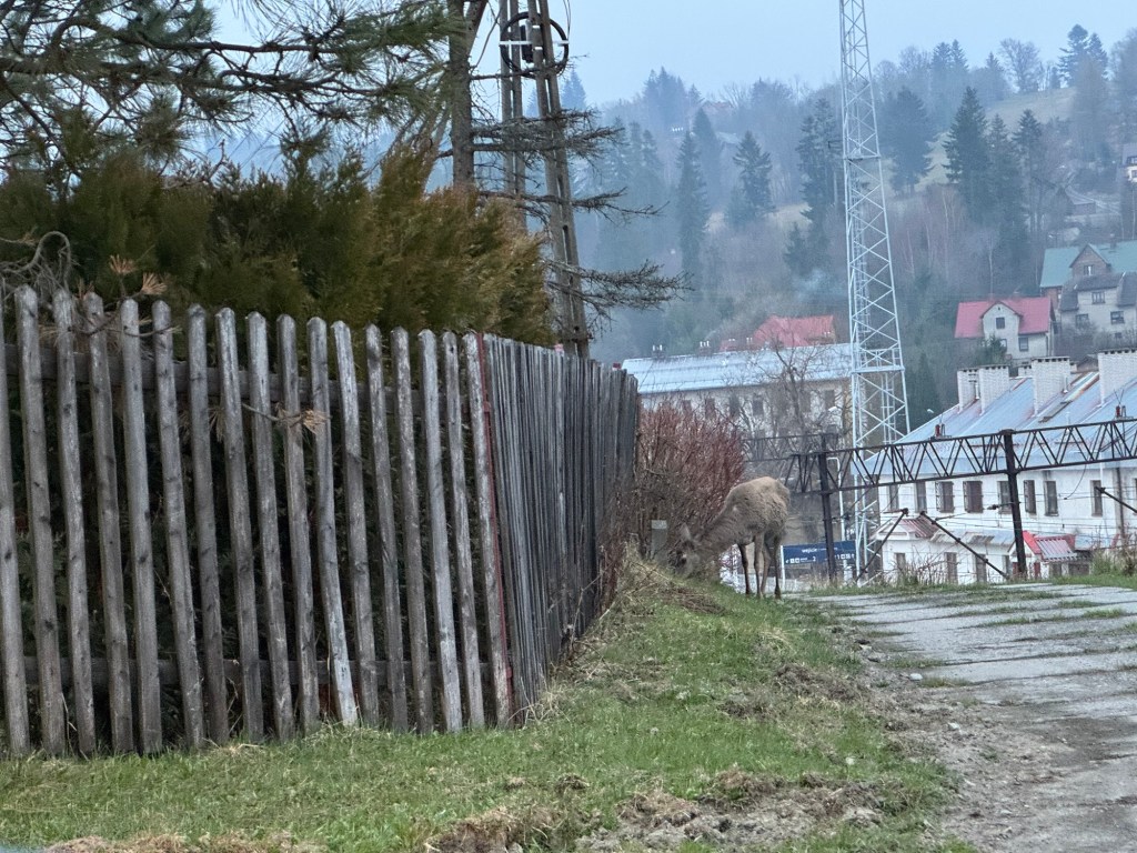 Der Ort liegt übrigens nur 350m von der slowakischen Grenze, die Bahnstrecke geht hier durch (was wir auch nicht wussten) und der Pupsort hat einen richtig großen und frisch renovierten Bahnhof. Wir fuhren zu unserem Quartier auf einer engen Brücke über die Gleise und direkt vor uns taucht eine große Hirschkuh zwischen dem ersten Haus und dem tieferliegenden Bahnhof auf. Karin hat nur ein paar Fotos aus dem Auto mit dem iPhone in der Dämmerung gemacht, um das Tier nicht womöglich auf die Gleise zu treiben. Die Kuh ließ sich überhaupt nicht aus der Ruhe bringen. Wir haben so eine große noch nie so nah und so lange gesehen. Toll.