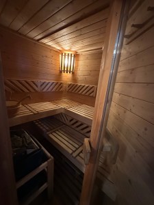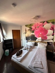 Das schöne Wetter war auch der Grund, warum wir lieber noch etwas am Quartier draußen saßen, als die Privatsauna an unserem Zimmer zu nutzen. Jaja, für 24€ mit Sauna und Whirlpool. 😎