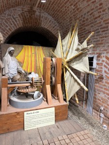 Drinnen war es interessant, nicht der totale Wahnsinn, aber durchaus sehenswert. Es begann im Keller mit einer Ausstellung von Projekten eines Herrn daVinci (nie gehört, aber kurzweilig).