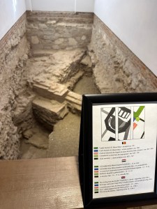 Ansonsten Vitrinen und Grundmauern/Gräber unter gläsernen Laufwegen.